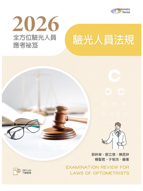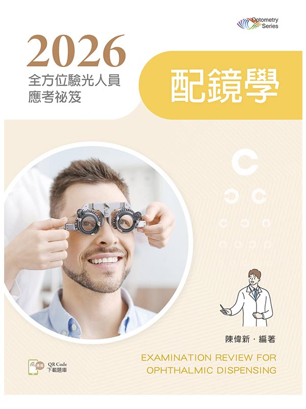 2026全方位驗光人員應考祕笈:低視力學【含歷屆試題QR Code】(四版) 內容簡介 本書依考選部命題大綱及歷屆考題編寫,精心彙整常考重點與重要概念,是一本全方位的驗光人員應考致勝祕笈,適合眼鏡配光從業人員及視光相關科系學生準備應考驗光人員考試。 作者教學與實務經驗豐富,編寫本書學習架構完整,包括:本章大綱、重點整理、隨文例題(含專家闢析)及題庫練習(歷屆考題及專家闢析),並以樹狀圖清楚呈現各章重點所在。 內文中以粗體字標示國考重點,輔以圖表說明,確實掌握命題方針。各章章末精選歷屆考題及解答,並解析相關概念,使讀者能融會貫通,舉一反三。各章以星星符號代表歷屆考題出題比例,數目越多代表出題比例越高,最多5顆,以供讀者備考參酌。 書中以QR Code提供讀者掃描下載歷屆試題題庫,以供應考複習所需,還可掌握最新命題趨勢,是一本全方位驗光人員應考致勝祕笈。 2026年版特別收錄最新114年的專技驗光人員高考考題,適合眼鏡配光從業人員及視光相關科系學生準備應考驗光人員考試。
