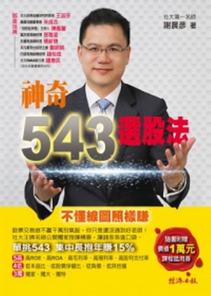 神奇543 選股法:不懂線圖照樣賺 簡單、規律、精準,學會神奇543選股法,對技術線型沒天分,你也能征服股海! 面對複雜的技術線型,你是否感到手足無措?尤其許多市場主力大戶,常利用線型製造騙線效果,引誘一知半解的投資人上當。社區大學人氣No.1超級名師謝晨彥,累積多年的實戰經驗,以巴菲特的價值投資法為基礎,精研出一套神奇的「543選股法」,近幾年來在股市中無往不利,年年創造15%的穩健獲利。 所謂「543選股法」,不主觀預測走勢、抓頭探底,而是著重基本面的運用,包含總體經濟、產業知識與財務分析。其操作思維在於,找出能長期穩定配發股利的股票,時大量買進,股價偏離價值時獲利了結。 不管你是股市新手還是老手,如果有以下困擾,建議你一定要學會「543選股法」: ★股價走勢起起伏伏,不知何時進退場…… → 「543選股法」用景氣循環找出合理價位,點出買賣點。 ★無法解讀財報數字密碼,常受消息面驚嚇…… → 「543選股法」憑3張財務報表,避開地雷公司。 ★想賺點外快和退休金,每天卻盯盤不得閒…… → 「543選股法」以極簡單的加減乘除,篩出雪球股。 本書特色: ★證所稅後,台股的長期投資方式:證所稅勢在必行,謝晨彥老師表示,這個台股艱困的年代裡,最好要有「長期持有、永續經營」的心態,因此建議以巴菲特的價值投資法為基礎,並搭配這套「神奇543選股法」,未來一定能在股市中無往不利,年創15%穩健獲利。 ★社區大學第一名師,學生多到在體育館開課:由於獨到的投資眼光,深獲投資人喜愛,曾受邀至台灣銀行財富管理部、各大銀行財富管理部、各大保險經紀人公司、各大資產管理公司、福華VIP俱樂部、扶輪社等團體開設投資課程,在社區大學開課期間,班班爆滿,人數多到必須借用體育館場地才能上課。 ★超完美選股邏輯,一手不留:本書從看懂總體經濟指標講起,搭配三大財報的圖解說明,最後教導讀者個股挑選,進而長期持有,一本人人都能照著做,也能照著賺的選股聖經。 ★超值回饋:隨書附贈價值1萬元課程抵用券。 ★各界鄭重推薦:萬寶投顧董事長 朱成志、交通大學財務金融研究所教授 王淑芬、News 98「財經起床號」主持人 陳鳳馨、富邦期貨總經理 張雅斐、永豐期貨總經理 楊新德、非凡電視台財經主播 鄭明娟、日盛期貨副總經理 錢怡成、交通大學EMBA執行長 鍾惠民