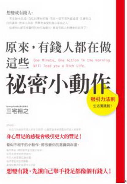 原來,有錢人都在做這些祕密小動作 改變信念的話,思考會改變、言語也會改變。 言語改變的話,行動也會改變。行動改變的話,習慣會改變。 習慣改變的話,性格也會改變。性格改變的話,命運也會改變。 (Mahatma Gandhi 甘地) 想要改變自己的命運,就必須先從信念與思考改變起,這是聖雄甘地講過的話。相信大部分的人都對自己目前的經濟狀況感到不滿意,一定也有很多人懷抱:「收入能再多20%就好了…」「真希望能變得更有錢…」等的願望。 其實,想達到這些願望,有個非常簡單又快速的方法,那就是「仿效有錢人的行動!」只要先讓自己舉手投足都像個有錢人,你的命運與人生也會跟著改變! 本書的作者在全日本開班授課,指導過上千位學員,並且出國留學及到世界各地旅行。至今他在世界各地遇到過許許多多的「有錢人」。 他採訪這些有錢人,收集了700個有錢人的生活習慣,並從中取116個,至少兩名以上有錢人在做、以及作者自己也做過的習慣,集合成本書,偷偷分享給在未來即將致富的你們! 書中介紹的「有錢人的習慣」都是非常輕易就能做到、甚至不用花到一分鐘時間!透過效仿有錢人的行為,將自己的生活習慣、價值觀、思考模式、待人與處事的方法與態度,都改變成「有錢人模式」!讓自己的個性和人生都導向「致富的軌道」上! 真正的有錢人不單只是戶頭裡面空有大筆存款而已,應該是連身體心靈上都富裕,才能使財富源源不絕的持續滾進來。