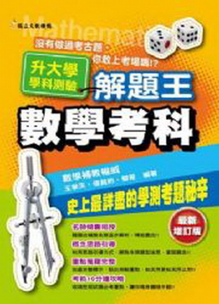 103年升大學學科測驗解題王:數學考科 命題觀念,實力才得以發揮甚而游刃有餘。 思路引導 一語破解命題核心,將定理及性質重新複習一遍,進而加深學習印象。 解題錦囊 針對解題撇步與超強公式,作出全面性的整理。 模擬檢定 根據最新考情編寫模擬試題,讓同學自我檢定。 考前10分鐘攻略 據近十年出題率及最新課綱強弱化程度, 將學測各主題擇其重點精要編入,掌握重要概念及定理。 收錄93-102年大學學科能力測驗數學考科歷屆試題, 且由補教權威名師做最完整的試題分析暨精解, 並含一回最新年度的模擬試題與解析,與最新收錄的「考前10分鐘攻略」。 不同於坊間一般的簡解,本書詳實的解析補強考生對觀念的理解, 甚至一題提供多種解法,讓同學強化思考脈絡,啟發作答技巧, 適合於最後衝刺階段時加強演練,在最短時間內快速掌握考試重點及命題趨勢, 是最實用的考前寶典! 【本書特色】 近十年歷屆試題全收錄 本書完整收錄最近十年來的學測歷屆試題,除了提供同學夠分量的演練之外, 也貼心附上解題思路與詳盡解析,讓同學透過演練試題熟悉解題過程,不用傻傻死背答案。 逐題詳細解析加註關鍵錦囊 延攬超強補教名師,以其多年豐富的教學經驗,逐題編寫詳盡的解析, 對於難度甚高的整合題型更有精闢的剖析。 歷屆試題破題的關鍵在於能否連結到相關主題內容, 因此詳列題目出處,讓同學養成具備所有應考觀念的能力, 實力才得以發揮甚而游刃有餘;此外,每題輔以思路概述, 讓同學們能將定理及性質重新複習一遍,進而加深學習印象。 解題錦囊則針對解題撇步與超強公式,作出全面性的整理。 模擬試題挑戰自身實力 依據現今時事與最新命題方向,編修最新年度的模擬試題供同學自我檢測實力, 讓即將上考場的各位考生們,立即掌握自身弱點與強項,衝刺最需補強之處。 考前10分鐘攻略 新增考前10分鐘攻略,依據近十年學測出題率及99課綱強弱化程度, 將四冊各主題重點精要編入,以期學子在最短時間內能掌握重要基礎概念及定理。