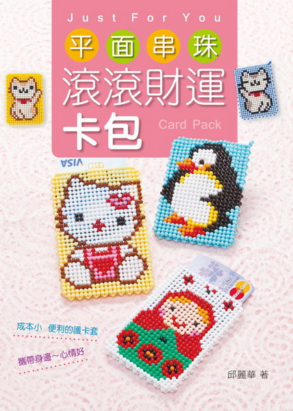 平面串珠滾滾財運卡包 表格式的平面串珠,快速完成令人開心的圖樣珠包(卡片套.護卡夾)。您可以選用自己的幸運圖騰與幸運色,將悠遊卡或銀行卡置入其中,享有珠圓滾滾蘊含滾滾財源的寓意。又有『轉運』之意,帶在身邊招徠好運。 象徵吉祥的鯉魚.福袋.長壽龜.招福.仙鶴.幸運貓.貴賓狗.太極熊....,以及兩小無猜.雙宿雙飛等甜蜜作品,讓愛串珠的朋友又有新花樣。