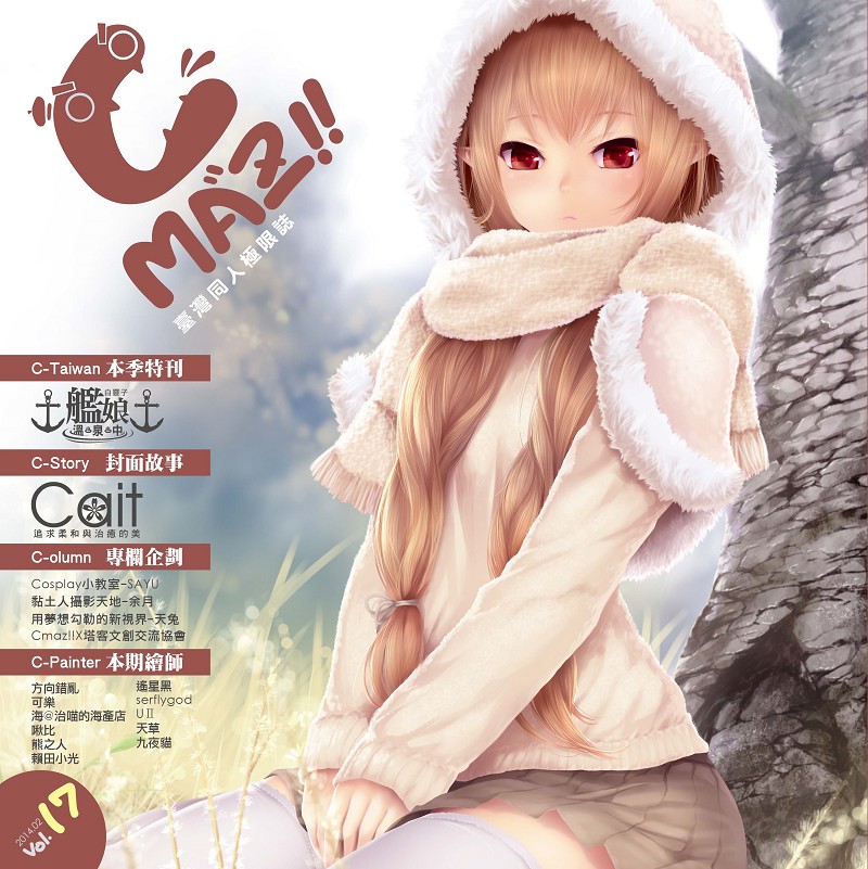 Cmaz!!臺灣同人極限誌Vol.17 Cmaz!!臺灣同人極限誌第十七期上市囉!同時也要跟各位讀者說聲新年快樂!在這新的一年裡,我們也會持續致力在Cmaz上提供高品質的圖畫、創作以及最新穎的資訊,讓Cmaz伴隨著台灣ACG創作不斷成長,希望各位讀者今年也能夠多多支持台灣同人創作。這期的封面繪師「Cait」是一位畫風非常柔和的繪師,他的作品夢幻且極富生命力,往往能帶給人一種療癒的感覺。另外,這期的專欄我們很榮幸能夠邀請到來自香港的「天兔」,深受色盲疾病影響的他,卻努力不懈的創作,實踐自己想成為一位繪師的夢想,並將一切的心路歷程分享給各位讀者,就讓我們一起進入他用夢想所勾勒的新視界吧! C-Taiwan 臺灣愛fun假–艦娘溫泉中 02 C-Story Cait–追求柔和與治癒的美 06 用夢想勾勒的新視界 – 天兔 20 C-Painter 繪師搜查員 方向錯亂 28 海@治喵海產店 34 啾比 40 可樂 46 熊之人 52 遙星黑 58 瀨田小光 64 Serflygod 70 C-Painter 繪師發燒報 UⅡ 76 天草 80 九夜貓 84 C-olumn 黏土人攝影天地 - 余月 88 Cosplay小教室 – SAYU 94 Cmaz!!X塔客文創交流協會 98