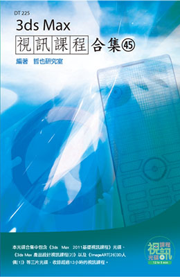 3ds Max 視訊課程合集(45) 本合集包含有《3ds Max 2011基礎視訊課程》、《3ds Max產品設計視訊課程(2)》與《ImageART(26) 3D人偶(1)》共計三張光碟,收錄課程超過12小時的視訊課程。 光碟1 3ds Max 2011進階視訊課程: 視訊光碟包含8大章節,收錄課程300多分鐘,超過5小時。 Chapter 01 開始使用3ds Max 2011 Chapter 02 石墨建模工具 Chapter 03 自由工具的使用 Chapter 04 材質貼圖的應用 Chapter 05 粒子系統的應用 Chapter 06 空間扭曲的應用 Chapter 07 動力反應器的應用 Chapter 08 角色動畫工具的應用 光碟2 3ds Max產品設計視訊課程(2) 光碟共分為6個章節,38個單元,總課程約450分鐘,將近7.5小時。 Chapter 8 水壺 Chapter 9 高跟鞋 Chapter 10 財神公仔 Chapter 11 手提音響 Chapter 12 數位相機 Chapter 13 手機 光碟3 ImageART(26) 3D人偶(1) 本光碟中收錄50張3D人偶影像,包含各式各樣的3D人偶姿勢,高解析度的影像為4,000 x 3,000 px,而低解析度的影像為800 x 600 px,檔案格式為RGB的JPEG檔案。適用於平面印刷、海報設計、廣告DM設計、卡片設計、名片設計、簡報設計、圖書封面設計,以及網頁設計…等等各式設計應用上。
