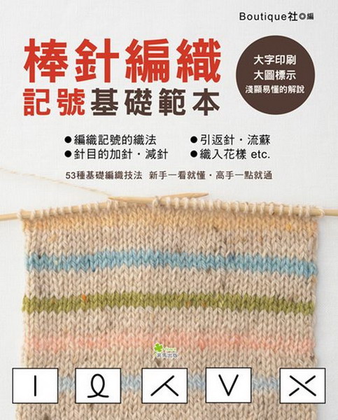 棒針編織記號基礎範本 【本書特色】 ★書中介紹53種編織技法,無論棒針編織的新手到高手都能得心應手! ★每項作品都使用大的字體與大的圖解進行淺顯易懂的解說,新手一看就懂,高手一點就通。 ★可用單一的編織技巧來設計,也可混搭各種技巧,更能挑戰獨創的設計作品。 ★ 詳細介紹各種編織記號與織法、配色線的替換方法,織物的綴縫與織入花樣等等,練習時邊織邊記,印象深刻。即使是基礎作品,善加變化,也能創造個人風格! 【內容簡介】 雖然一年四季都有編織衣飾露臉的場合,但每到秋冬,總是格外教人想念溫暖的編織衣物。比起鉤針編織,或許有很多人會認為棒針編織很困難,如果從頭開始慢慢學習的話,你會發現棒針編織別有一番樂趣! 本書以較大的文字與插圖進行淺顯易懂的解說,教初學者一步一步學會棒針編織,從棒針編織的基礎知識、如何看懂棒針編織記號,甚至進階的棒針編織技巧,讓你體會到編織的無窮樂趣和無限魅力!