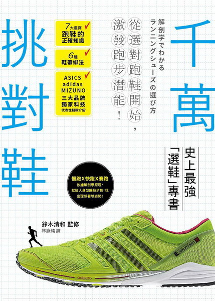 千萬挑對鞋 從選對跑鞋開始,激發跑步潛能! 依據自身腳型X著地姿勢,選擇合腳的跑鞋! 【本書特色】 ◎ 整理連店員都不知道的7大選擇跑鞋的正確知識,快速判斷「最適跑鞋」。 ◎ 依據解剖學原理,依個人身型整理歸納慢跑、快跑、賽跑步態,找出理想著地姿勢。 ◎ 介紹asics、adidas、mizuno三大品牌獨家科技,代表性鞋款。 ◎ 介紹6種鞋帶綁法,創造終極合腳感。 ◎ 舊鞋急救室!透過「切割鞋底」解決跑鞋缺陷,解決扁平足、足底肌膜炎、肉刺、腳背疼痛。 你的跑鞋合腳嗎? 大家在挑選跑鞋時,除了品牌、款式、尺寸,還有什麼考量的項目呢?「初學者要選擇厚底、安全的鞋子」這樣的觀念,是常識還是迷思?其實,每年都會有許多跑步愛好者,因為買錯鞋子導致足部骨骼排列扭曲、使足弓變形,甚至因此誤會自己是扁平足,如果在足部變形後仍然選擇剛好合腳鞋子,腳形便很有可能無法恢復原狀。 本書作者鈴木清擁有多年解決跑步障礙的經驗,在碰到無數案例後,彙整出「若想充分發揮跑步潛力,首先需根據著地方式選擇跑鞋。」這心得,在本書中無私分享如何依據自身腳型、跑步類型和著地方式,選擇合腳的跑鞋,並分享自己「如何檢查跑鞋品質」。 「工欲善其事,必先利其器」,選對跑鞋,穿上能夠追隨自己身體動作的鞋子,就能加大步幅、提高速度,大幅改變跑步成績,充分發揮跑步潛力!