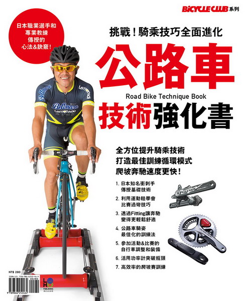 公路車技術強化書 這是一本集結專業公路車選手和教練群專長領域的公路車教學書籍,也是前年暢銷熱賣的《奔馳吧!公路車快速上手》進階技巧教本。本書以打造良性訓練循環模式所需的知識、訓練方法為宗旨來提升公路車騎士的騎乘實力,內容有: 1. 職業衝刺車手傳授騎乘的基礎:以衝刺能力著名的日本宇都宮BLITZEN前職業選手?善光,傳授使用卡式踏板流暢的起步&停止的技巧,並公開能和對手拉開距離的衝刺法以及能跟上集團奔馳的技術。 2. 過彎的基本技巧:公路車的過彎十分倚重身體重心的移動,若能掌握身體在自行車上自由活動的方法,就可順利安全的過彎,甚至能比別人更快過彎。本單元包含前後左右移動身體來加以控制公路車的方法,同時也有能在競速比賽使用的過彎技巧。 3. 藉由Fitting讓奔馳變得更輕鬆:Fitting(騎姿設定)目的並非是為了騎得更快,而是為了能夠沒有疼痛、不受傷、輕鬆騎乘。只要做了Fitting一定會變得更輕鬆,也越能發揮出實力。此次要介紹的SPECIALIZED的BODY GEOMETRY FIT系統,受到知名職業三鐵選手GWEN JORGENSEN完全信任,並能配合騎士的騎乘風格引導出力量。 4. 公路車騎姿最佳化的訓練法:只要自行車設定好,就能形成理想的騎姿……這其實不是很容易就能辦到的。就像每個人站立的姿勢都不相同,每個人的狀態也不一樣,包括施力方式、柔軟性不同、因柔軟度造成的動作差異,在在會體現於實力表現上。雖然能讓自行車的設定配合個人狀態,但如果期待更優異的實力表現,改善動作也是很重要的,所以在此就來介紹「使騎姿最佳化的動作訓練方法」。 5. 活動和比賽前的器材準備:雖然統稱為公路車,但比賽時需要速度與可靠性,而登山賽需要輕量,長途騎乘則是以不累積疲勞、能應對意外狀況來準備。不同類型的活動或比賽所要求的要素都各不相同,其實只要替換一些零件,就能變身為針對某一類型活動的規格。這裡也會介紹參加比賽或活動前的準備! 6. 功率訓練入門:能檢驗騎士出力的訓練工具──功率計,以往通常是職業選手使用,近年來越來越多平價商品被開發,連初學者也能輕易的購入。不過實際上應該有許多使用者還未能將功率計活用在訓練當中。本單元將介紹平時訓練或比賽中的功率計活用法。 7. 高效率的登山賽前訓練:本單元主要介紹在登山賽中能提升成績與時間所需的騎乘技巧與訓練法,從體能與技巧兩方面來加以強化。另外也介紹了登山賽裝備的準備與攻略。 8. 遇到意外狀況的急救術:當因突然的事故或意外摔車而受傷時,如何迅速且正確的緊急處置是關鍵。在這裡介紹緊急時刻能派上用場的基本急救法。