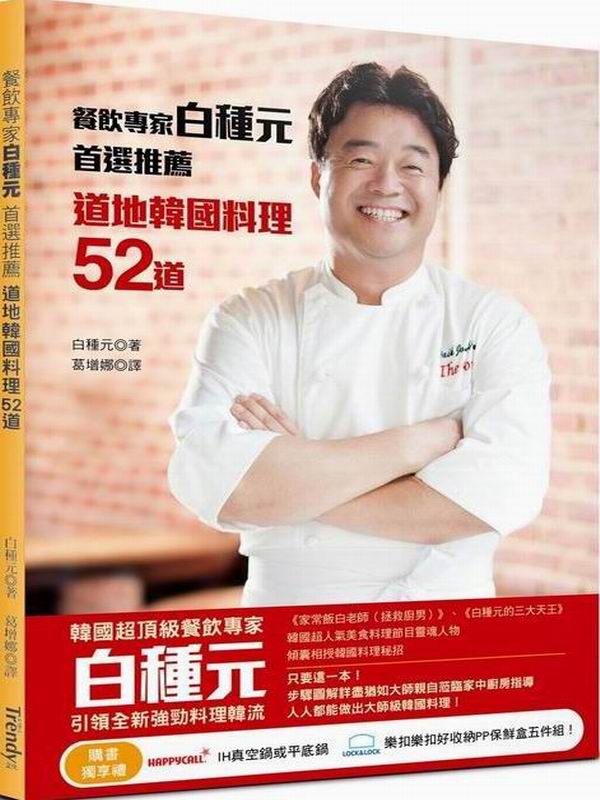 餐飲專家白種元首選推薦道地韓國料理52道 最高人氣的韓國餐飲專家 白種元 親自傳授料理秘訣! 正宗韓國料理首選52道核心菜單食譜 獨家料理秘訣不藏私大公開 讓所有廚房新手都能夠輕鬆料理成功! 「希望透過此書讓大家可以簡單做出營養滿分的韓國道地家庭料理,享受做菜過程的同時,也能吃得健康。」-白種元 大韓民國家喻戶曉的「白老師」─白種元,不僅是擁有30多個餐廳品牌、旗下1200多家餐廳遍佈世界各地的韓國超級餐飲專家,更有著以他為名的《白老師家常菜(拯救廚男)》、《白種元的3大天王》等高收視率電視節目。 比任何人都喜歡食物、喜愛餐廳的白老師,至今依然親自到廚房,和廚師們一起研發各式新菜色。在經營餐廳之餘也不斷地研發新菜單的白種元老師,深知飲食在日常的重要,因此格外希望能協助料理新手,在家也能做出美味的韓國料理。本書收錄了白老師深思熟慮後,首度特地選出的獨家食譜。刻意選用平易的食材、簡單的步驟就能製作的韓國料理,並在書中為料理過程標註出親自在廚房嘗試及領悟的「白種元的TIP」,將在韓國尋常不過卻絕對必吃的料理,由處理食材的方法開始,配合圖解詳細說明,讓任何人只要跟著步驟就能一一完成。