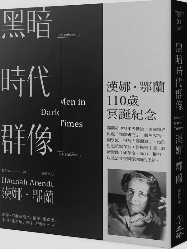 黑暗時代群像(第二版) 漢娜.鄂蘭論萊辛、羅莎.盧森堡、卡爾.雅斯培、華特.班雅明…… 19世紀末與20世紀前半葉,是個政治大災難、道德大淪喪、藝術與科學卻突飛猛進的時代,這裡所論的正是那個時代的知識份子。 一個最黑暗,也是思想文化最燦爛的年代, 鄂蘭與這些精采的人在同一時空中交會。 本書是20世紀重要思想家漢娜.鄂蘭(Hannah Arendt 1906-1975)於20世紀70年代完成的著作。鄂蘭被譽為是20世紀最偉大,最具原創性的思想家之一。 她在書中所論的都是20世紀前半葉的知識份子,都是她身邊熟識的人。處在上一世紀上半葉的歐洲學術文化中心,一個最黑暗,也是思想文化最燦爛的年代。 「黑暗時代」一詞出自德國詩人布萊希特的名詩〈致後代子孫〉,指的是20世紀黑暗現實中無所不在的恐怖。 漢娜.鄂蘭認為,本書中她所談到的幾位人物──包括萊辛、羅莎.盧森堡、教宗若望二十三世、卡爾.雅斯培、伊薩.迪內森、賀曼.布羅赫、華特.班雅明、貝托爾特.布萊希特、華特馬爾.居里安與藍道.賈雷爾──照亮了那個時代的黑暗。 漢娜.鄂蘭相信,「即使是在最黑暗的時代,人都有期望光明的權利,而光明與其說是來自於理論與觀念,不如說是來自於凡夫俗子所發出的螢螢微光,在他們的起居作息中,這微光雖然搖曳不定,但卻照亮周遭,並在他們的有生之年流瀉於大地之上。」正是基於這樣的信念,乃有了這組群像的勾勒。