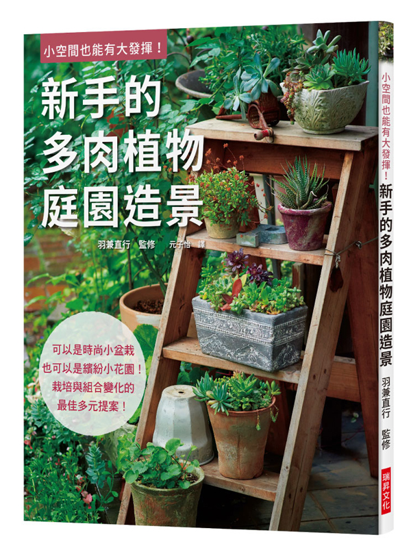 中文書名:新手的多肉植物庭園造景 原文書名:はじめての多肉植物ガーデン 內容簡介 小空間也能有大發揮 多肉植物也能用來綠化庭園! 想擁有一個綠意盎然的庭園,卻又沒有時間經常維護? 家中空間有限,卻又想為家裡增添綠意? 不想花大錢改造,只想用身邊有的容器種種植物…… ──用多肉植物打造的庭園正好非常適合你! **多肉植物庭園造景的優點** ◇外型與種類多元,可自由搭配◇ ◆好種又好生長,不用費心照顧也OK◆ ◇栽種條件簡單,各式容器都能種!◇ 種類繁多的多肉植物,不但外觀各異其趣,顏色更是變化多端。再加上只要少量的土、水,幾乎能種在各式容器內的簡易種植條件,使得不少人對多肉植物情有獨鍾。 除了一般常見的,將多肉植物合植在盆缽裡之外,多肉植物其實也可以直接種植在地上或是架高的花圃裡,並搭配一些可愛的小裝飾,打造出吸睛度十足而且獨一無二的庭園造景。 本書以多肉植物為主角,前三個章節完整收錄實作範例與講解盆植&地植重點、多肉植物相關知識、庭園打造方法。第四章內容則包含組盆範例解說、多肉植物花圈組盆教學等,以全彩圖文方式清楚呈現。 諸如廢棄小水盆、有裂縫的瓦磚、使用多時的舊鍋子、老舊的木盒,甚至是撿到的朽木,都可以搖身一變,成為栽種多肉植物的容器,營造出特殊的意趣氛圍或復古感。 末章則摘要收錄多肉植物圖鑑,標示它們的生長類型、冬&夏季的留意事項、外型大小等資訊。為大家提供最便捷的參考資料。 快來打造你的繽紛小樂園, 讓家中不論室內外,都能有可愛的多肉植物相伴!