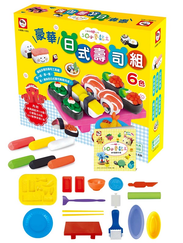 3Q小麥黏土:豪華日式壽司組 內容簡介 喔伊細的日式壽司自己做 你就是小小壽司師傅! 哇∼海苔壽司、鮭魚壽司、蝦壽司、雞蛋壽司…… 好多種類快來挑戰做做看吧! 黏土不但能促進孩子的手部小肌肉發展, 更能激發他們無限的想像力! 搭配超豐富的早餐組模具 一次滿足孩子所有的願望! 內容物: 15個壽司組模具 6色小麥黏土 1本DIY教學手冊 本書特色 安心製造:通過檢驗,讓大人小孩都能安心使用。 質地柔軟:質感扎實,小朋友可長時間揉捏,不易乾燥! 色彩多樣:顏色飽和,還可混色,創造更多色彩變化! 適用年齡:3歲以上 尺寸:21.7*18cm