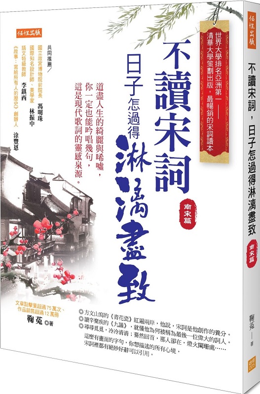 不讀宋詞,日子怎過得淋漓盡致(南宋篇):道盡人生的綺麗與唏噓, 你一定也能吟唱幾句,這是現代歌詞的靈感泉源。 內容簡介 世界大學排名亞洲第一的——清華大學策劃出版,最暢銷的宋詞讀 本, 中國中小學指定讀本,預購階段網路點擊超過75萬次,預售即突破12 萬冊。 ◎方文山說「李清照是我的啟蒙,宋詞是我創作的養分」,代表作《青 花瓷》紅遍兩岸。 ◎讀了辛棄疾的《美芹十論》、《九議》,就能理解他為何被稱為最後一 位偉大的詞人。 ◎趙明誠?沒聽過,儘管很有才氣,但世人只會稱呼他第一詞女李清 照之夫。 ◎尋尋覓覓,冷冷清清;花落花開自有時;驀然回首,那人卻在,燈 火闌珊處…… 這麼有畫面的字句,你信手拈來、甚至隨口吟唱,你想描述的所有心 境, 宋詞裡都有絕妙好辭可以引用,不讀宋詞,你怎理解人生如何淋漓盡 致。 宋朝,經過五代十國半世紀的分裂亂世,直到宋太祖趙匡胤一統江 山, 再現於文化的天空中,宋詞,與唐詩並稱為中國文學史上的雙峰。 本書作者鞠菟擁有工科和管理雙學士學位,還是全球500強的企業經 理, 卻是個超級歷史迷,他結合了史書史料、野史神話,再加上一點推理 聯想, 透過宋詞,將詩詞歌賦、名人典故、歷史知識,串聯成一個完整的故 事。 一邊讀你一定也能邊唱幾句,現代流行歌的始祖打哪開始? 就是宋詞。 ◎南宋: •周邦彥寫詞被貶,再作一首卻跳級升官: 跟宋徽宗同時愛上名妓李師師,周邦彥只好躲在床下作《少年游》。 此詞卻曝露了皇帝的青樓行,龍顏大怒貶了周邦彥。 周離開京城再填一闕《蘭陵王》,卻讓皇帝起愛才之念,官職連跳好幾 級。 •紅酥手、黃滕酒,陸游名與漢江流 大家都以為「紅酥手」描寫的是陸游的前妻唐婉的纖纖玉手, 但這其實是一段強勢婆婆干涉兒子婚姻的悲劇,婆媳問題果然是古今 難題呀。 •辛棄疾滿腦攻金戰略,孝宗認同卻不採用: 辛棄疾為宋孝宗提供了進攻金國的戰略,但去打仗的將領張浚卻少做 了重點, 導致宋大敗。他只好再提《美芹十論》、《九議》,孝宗雖認同,卻被金 國打怕了, 沒有再出兵。結果十論九議,只能說說就好,紙上談兵。 •人生自古誰無死,留取丹心照汗青: 文天祥,這名字取得好,皇帝御筆一揮從第五名躍為狀元。 但南宋末年貧弱,名字再好也沒用,天祥當官沒幾年,就被元軍擒 獲。 但他不願向敵國屈服,寫下千古名句:「人生自古誰無死,留取丹心照 汗青」。 這本宋詞不只賞析作品,獨特之處是超多妙趣故事: 李清照一介女流但豪邁壯闊更勝蘇軾、你一定讀過朱淑真的詞卻不自 知、 岳飛除了戰無不勝,書法與作詞也成就不凡、 辛棄疾文武全才,他的治軍四預言條條應驗,卻過了十年才有人重 視、 文天祥寫了一首被稱為「完美」的詞……。 推薦者 馮明珠 國立故宮博物院前院長 林振中 國際知名設計師、美學家 李鎮西 語文特級教師 涂豐恩 《故事:寫給所有人的歷史》創辦人