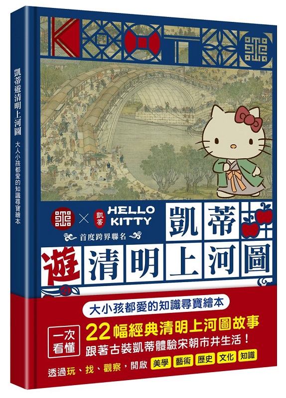 凱蒂遊清明上河圖:大人小孩都愛的知識尋寶繪本 內容簡介 ★國立故宮博物院×凱蒂,世紀最可愛獨家聯名!★ ★三麗鷗一姐凱蒂穿越宋朝當古人 ★ ★全球獨家!凱蒂古裝新造型首度登場 ★ ★〈清院本清明上河圖〉畫中人物超過4000人,作品細膩嚴謹 ★ ★ 跟著凱蒂透過尋寶玩樂方式來認識清明上河圖吧! ★ |古裝凱蒂穿越宋朝,體驗鄉村市井的日常| 一次看懂22幅經典清明上河圖故事! 透過玩、找、觀察,開啟美學、藝術、歷史、文化、知識 ◆以前的人為何要在清明節放風箏? ◆為何舉行婚禮時,每個人都斜披著一條紅長巾? ◆你知道古代居然有專門給船舶行駛的門? ◆中國古代女子是不能隨便走在路上的? ◆古代就已經有公共澡堂了? ◆在路上看到長竿子上掛著布條是代表什麼? ◆為何在鄉間人們都不太愛騎馬,反而愛騎驢? 畫中以人物景致繁多取勝,按照各朝的仿本,集各家所長的作品。 每個人衣著各不同,表情豐富,其間還穿插各種活動, 這一段段古裝凱蒂與宋朝的優雅邂逅,就這樣開始了∼ 內容簡介 〈清院本清明上河圖〉這幅家喻戶曉的名畫,是許多人對於故宮典藏文物的印象之一, 這次凱蒂穿越名畫中,藉由尋找凱蒂元素,讓大家在尋找的過程裡, 更能細細賞析名畫中你不曾知道的宋朝歷史、常民生活、建築或呼應古今。 相信大人小孩都能從尋找中發現新鮮事! 本書特色 {和凱蒂一起找清明上河圖的祕密吧!} 遊戲攻略搶先看! ◆找一找:快來找一找凱蒂與其他朋友跑去哪裡了? ◆隱藏物件:可以幫忙找出凱蒂的玩具隱藏在哪裡嗎? ◆你知道嗎:特別說明畫中食衣住行娛樂與現代不一樣的地方。 ◆凱蒂求救:突然出現一些狀況,請跟凱蒂一起解決吧! ◆原來如此:介紹你較不知道的生活小常識與文化典故。
