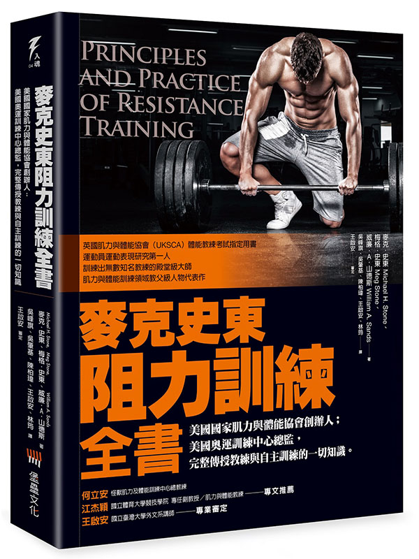 作者簡介 麥克.史東(Michael H. Stone) 東田納西州立大學運動科學系之競技運動實驗室負責人;前美國肌力與體能學會會長。 在此之前,他曾擔任美國奧運訓練中心首席運動生理學家、蘇格蘭愛丁堡大學運動競技系主任。他還是澳州珀斯的Edith Cowan大學、蘇格蘭愛丁堡大學以及田納西州James H. Quillen醫學院的客座教授。 其研究興趣主要為運動員肌力與爆發力的生理適應與訓練,已發表400多篇論文,領域包括生物能量學、營養學以及肌力與體能訓練,且是美國國家肌力與體能學會(NSCA)、英國肌力與體能學會創辦人之一。 他是1991年NSCA年度競技運動科學家得主,且於1995至97年擔任NSCA會長,並於2000年獲得NSCA終身成就獎。他曾在美國和英國執教過多個國際和國家級舉重運動員(包括一名奧林匹克運動員)和投擲項目選手。 梅格.史東(Meg Stone) 現任東田納西州立大學運科與教育卓越中心總監,以及美國奧運訓練中心總監。 東田納西州立大學運動成績提升聯合會(Sports Performance Enhancement Consortium)的負責人,以及助理田徑教練。至今仍是NCAA鉛球與鐵餅記錄保持人,且曾兩度代表英國擔任奧運會鐵餅項目選手,並於1982年大英國協運動會獲得金牌。 她是第一位在NCAA第一級聯盟美式足球隊擔任主教練和體能教練的女性,她在亞利桑那大學和德州理工大學都擔任過該職位。她還曾在阿巴拉契亞州立大學擔任田徑教練,並於1999年回到家鄉蘇格蘭,成為國家田徑教練,是為歐洲首位擔任國家隊教練的女性。史東曾在美國和英國執教過幾位國際級運動員,其中包括四名奧林匹克運動員。她還指導過許多後來在NBA,MLB和NFL出賽的運動員,其中包括前公牛隊球員,現任金州勇士隊總教練史帝夫.科爾。此外,她還透過Carmichael Training Systems和位於科羅拉多泉的USOTC,訓練公路自行車選手和殘障奧運選手。 威廉.A.山德斯(William A. Sands) 美國奧林匹克委員會運動生物力學和工程負責人。他曾在普萊西德湖奧林匹克訓練中心(Lake Placid Olympic Training Center)擔任高級體育生理學家,並曾擔任美國田徑協會和跳水協會的生理學家。他曾擔任奧運會和世界錦標賽體操運動員的教練,並曾擔任美國女子體操精英教練協會主席。山德斯博士是國際運動生物力學學會的理事,也是美國運動醫學學院的成員。 審訂者簡介 王啟安 國立台灣大學、國立台灣科技大學兼任講師 怪獸訓練肌力及體能教練B級 國立台灣師範大學翻譯研究所畢業 粉專:王啟安肌英學院 譯者簡介 王啟安 國立台灣大學、國立台灣科技大學兼任講師 怪獸訓練肌力及體能教練B級 國立台灣師範大學翻譯研究所畢業 粉專:王啟安肌英學院 林筠 自由口筆譯員、中英主持人/司儀,目前就讀臺灣師範大學翻譯研究所碩士班。 吳峰旗 怪獸肌力體能B級教練 吳肇基 骨科專科醫師,臉書粉絲專頁「大夫訓練」編輯。有感於現代醫療對於骨科傷病及老年退化的不足,致力於推廣肌力與體能訓練。 陳柏瑋 臉書粉專:怪力中醫版主。 中華民國中醫師;中華民國運動教練學會—肌力及體能教練丙級;怪獸訓練—肌力及體能教練B級。 一名自醫學生時期即開始學習肌力與體能訓練的中醫師,希望發揮自己醫師身分的話語權來傳遞肌力訓練對健康的重要性。