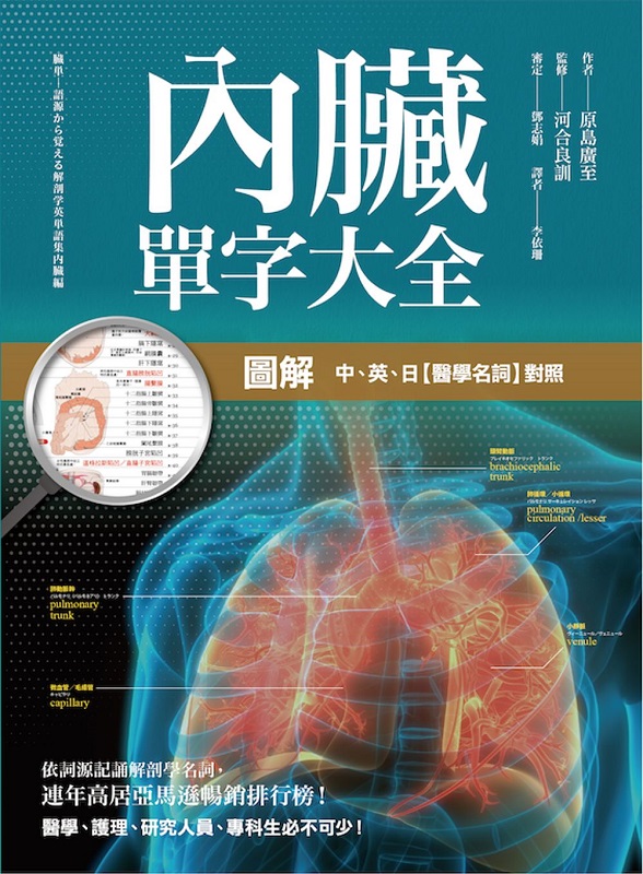 圖解 內臟單字大全 內容簡介 ∼依詞源記誦解剖學名詞∼ ★日本醫學排行NO.1 ★連年高居亞馬遜暢銷排行榜! ★醫學、護理、研究人員、專科生必不可少! ★國立成功大學基礎醫學研究所博士、長庚科技大學副教授 鄧志娟審定 ◆◆依詞源記誦解剖學單字◆◆ 【解剖學單字大全】為楓書坊最新出版的醫學名詞專書, 以圖解指出專有名詞代表部位,並標示「中、英、日」三國語言以利對照。 當今的國際解剖學術語為拉丁語,英文中使用的解剖學術語,也幾乎源自希臘語和拉丁語,內文詳述名詞的拉丁、希臘等詞源, 讀者可據此推測專有名詞的定名原由、詞語與詞語間的聯繫,減輕入門時需立刻記憶大量解剖學名詞的苦惱。 ◆◆人體六大系統相關辭彙彙整!◆◆ 《內臟單字大全》網羅了主要的人體系統專有名詞, 清晰、新穎的圖解讓人能快速理解。 書中分為【循環系統】、【淋巴系統】、【呼吸系統】 【消化系統】、【泌尿生殖系統】、【內分泌系統】等6大部分。 清楚標示各個系統的功能,並搭配模式圖說明。 文內也盡可能對歷來文獻標示略有不同的部分加以解說, 使讀者便於歸納、比較、總結。 ◆◆醫療、體育、藝術專業讀者工具書◆◆ 本系列可當作醫療教學教材,也推薦專科學生自習, 是人體科普、臨床醫療、教育等工作者的絕佳參考書, 研究者或護理人員等皆可透過本書,提升自己的知識與技術。 本書特色 ◎3種記憶解剖學名詞的方式:【看圖記憶➜中文名詞】、【英文、日文記憶➜中文名詞】、【語源記憶➜中文名詞】。 ◎中、英、日文相互對照:3種語言,連結【內臟圖解】、【拉丁、希臘語源解說】,相互應證、對照,利於快速理解、記憶。 ◎穿插有趣小故事專欄:人體六大系統詞源故事!有利理論實踐、臨床結合,拓展知識領域。