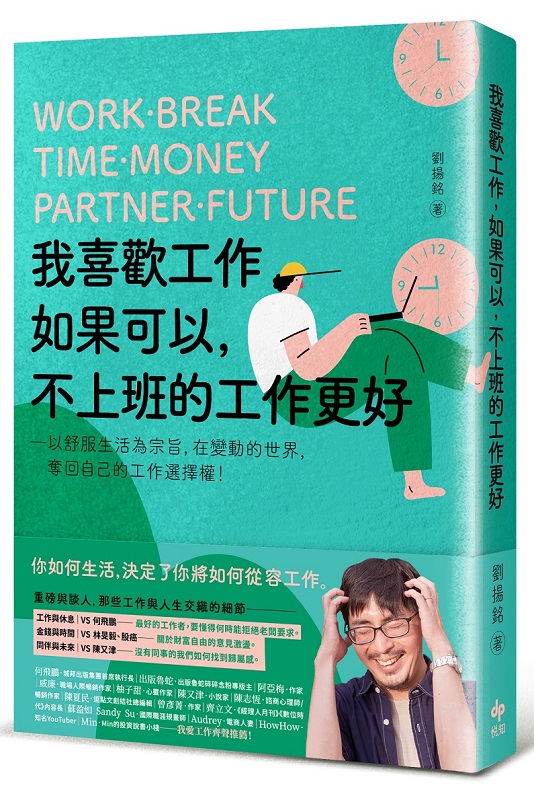 我喜歡工作,如果可以,不上班的工作更好:以舒服生活為宗旨,在 變動的世界,奪回自己的工作選擇權! 內容簡介 擱淺時代下,探索全新的工作模式── 你如何生活決定了你將如何從容工作。 是你想要的生活風格,決定了你的工作模式。 理想的生活是好好工作也認真休息,與時間和金錢保持友善的關係, 如果還能擁有一起創造未來的夥伴,這樣的人生豈不太棒? 生活是由工作與休息、金錢與時間、同伴與未來所構成,缺一不可。 每個人的調配比例不盡相同,假使你對現在的一切感到失望,不如就 從本書重拾熱情。 大疫時代的變動,「工作」有了嶄新的定義!上班不再八小時,地點不 僅限於公司,同事、客戶都可以在網路上相見……好像成為自由工作 者還不錯? 身為資深自由工作者,作者詳實記錄離開職場不上班,到重拾喜愛的 工作,透過無數次的抉擇,才有了現在的理想生活。 「每個選項,都是眾多可能的一種,我的選擇不見得最好,只是把需 要的取捨如實寫出,逐漸構成獨特的工作與生活面貌。」──劉揚銘。 本書特色 1:重量級與談人,暢談工作與人生交織的細節 工作與休息|VS. 何飛鵬 ──最好的工作者,要懂得何時能拒絕老闆要求。 時間與金錢|VS. 林旻毅、股癌 ──關於財富自由的意見激盪。 同伴與未來|VS. 陳又津 ──沒有同事的我們如何找到歸屬感。 本書特色2:針對「工作與休息、時間與金錢、同伴與未來」,陪伴你 面對工作帶來的難題。 ◎找回支配人生的權利 透過接案提升實力,而自律往往是成功的關鍵。 ◎把妥善休息列入行程 每天記錄工作、休息的時間,並且隨時檢視及調整。 ◎時間的取捨練習 像是整理房間的取捨,先確認丟棄不再需要的東西。 ◎分類工作,進而選擇 「金錢」是存活的必備燃料,「有趣」則能拓展未來的廣度。 ◎藉由合作觸及新領域 每個工作成果,都是無形的名片,永續創作,才能讓自由工作更長 久。 ◎焦慮、不安,有時是向上的力量 不過度安逸,持續性的焦慮可以成為更好的自己。 我愛工作齊聲推薦! 何飛鵬.城邦出版集團首席執行長|出版魯蛇.出版魯蛇碎碎念粉專 版主|阿亞梅.作家|威廉.職場人際暢銷作家|柚子甜.心靈作家 |陳又津.小說家|陳志恆.諮商心理師/暢銷作家|陳夏民.逗點文 創結社總編輯|曾彥菁.作家|齊立文.《經理人月刊》《數位時代》 內容長|蘇盈如Sandy Su.國際職涯規畫師|Audrey.電商人妻| HowHow.知名YouTuber|Min.Min的投資說書小棧── 分處在公司體制內外的各界人士推薦短語 第一次認識揚銘是在去年誠品的訪談中,我們聊了對於金錢、時間的 價值觀以及意義。很有衝擊力,從揚銘的口中除了讓我對這些既有的 事有更不同的思維外,更有趣的是了解到他對工作、時間以及金錢的 取捨及解讀。 生活在現代的我們,一不小心就會被現實中毫不留情的步調帶走,迷 失自我。在這本書中,除了能從揚銘溫暖但堅定的文字讓自己沈澱放 鬆外,更能重新思考工作、金錢這些身外之物對我們的價值。相信讀 者一定能在這場閱讀盛宴中收穫滿滿,並能勇敢追尋自己想要的,做 自己喜歡的樣子! ───Min.Min的投資說書小棧 作者是自由工作的實踐家,他在書中示範了職涯中最危險的動作──跟 工作談戀愛、結婚、分居、離婚……再重新愛上工作!如果把「工作」 比喻為一段關係,「去上班」就像走進婚姻,而這本書將告訴你如何在 不結婚的前提下自在享受戀愛、並同時保有自我,當然,還有最實務 的賺錢。越熱愛工作的人,越該閱讀這本書,好好保護自己的心,才 能避免被最愛的工作剝削。 ───阿亞梅.作家 人生哲理多半是浪漫的誤會,先是淪為陳腔濫調,然後變成逼迫他人 必須遵守的傷人武器。自由工作者劉揚銘數年來所努力的,便是把這 世界對職場及工作所推崇的「美德」與「規範」,透過自身的實驗一一 打破,找到有助於改善工作環境且增加自身成就感的方法。全書主題 雖然圍繞在工作之上,實際則是一名創作者對內在核心的觀測以及提 醒:不要為了固守外在規則而糟蹋了自己。一本追夢者都應該閱讀的 行動之書! ───陳夏民.逗點文創結社總編輯 《我喜歡工作,如果可以,不上班的工作更好》是一盞救苦救難的明 燈,陪伴自由工作者在孤獨的黑暗行走,打造踏實的幸福。劉揚銘在 書中回憶過往:無故撞倒路人、職場捅刀、霸凌同學⋯⋯體制內的他 是不擇手段的存在,是行走的喪屍,生人勿近。但喪屍有一天想起自 己是人,「自由工作」還給他作為人的價值,卻也成了一顆體制外的泡 沫。——且看文字工作者界的半澤直樹,如何催討帳款、精算生活、 甚至自己出錢當老闆,在泡沫經濟中求生存,讓人忍不住想大喊:「這 樣竟然也可以?為什麼我之前都沒想到!」 ───陳又津.小說家 自由工作是現代人職涯的新選擇,我成為自由工作者也已經三年多。 這三年來,除了思索如何增加更多收入外,更多的時候,是在工作與 休息、健康及家人相處等人生要務上角力著,試圖找到完美的平衡 點。劉揚銘老師的新書來得真是及時,正好提供我思索身為自由工作 作者,如何經營事業、家庭、友誼、金錢、休閒與健康的新穎觀點, 而真正邁向更自由的境界。書中的觀念,不只適用於自由工作者,任 何型態的職人都該探究與思索,不管上班或不上班,都可以活出更自 由與滿足的人生。 ───陳志恆.諮商心理師/暢銷作家 如果我「