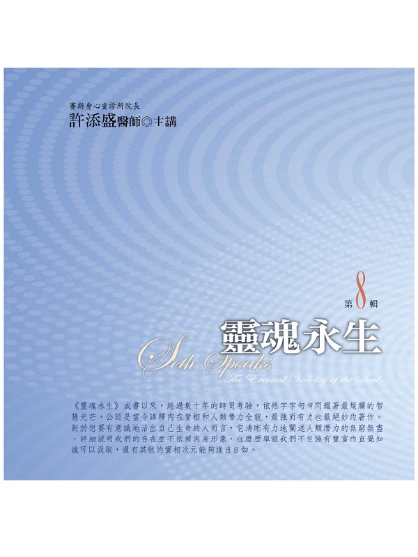 靈魂永生有聲書第 8 輯 內容簡介 《靈魂永生》成書以來,經過數十年的時間考驗,依然字字句句閃耀著最燦爛的智慧光芒,公認是當今講釋內在實相和人類潛力全貌,最強而有力也最絕妙的著作。對於想要有意識地活出自己生命的人而言,它清晰有力地闡述人類潛力的無窮無盡,詳細說明我們的存在並不依賴肉身形象,也歷歷舉證我們不但擁有豐富的直覺知識可以汲取,還有其他的實相次元能夠進出自如。