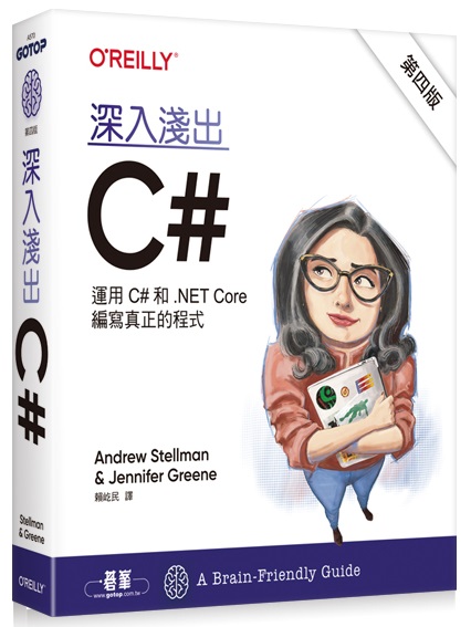 深入淺出 C# 第四版 內容簡介 運用C#和.NET Core編寫真正的程式 「太感謝你了!你的書讓我的職涯平步青雲。」 —Ryan White 遊戲開發者 「Andrew與Jennifer寫出一本簡明、權威的C#開發入門書籍,最重要的是,讀來非常有趣。」 —Jon Galloway 微軟.NET 社群團隊資深程式經理 「如果你想要深入學習C#,而且希望在過程中充滿樂趣,看這本書就對了。」 —Andy Parker 剛起步的C#程式員 你將從本書學到什麼? 本書用有趣、高度視覺化的方式來介紹C#、.NET Core與Visual Studio,帶你深入研究C#,並教你製作app、使用者介面、遊戲等等。這本全新改寫的指南涵蓋C# 8.0與Visual Studio 2019,可讓初學者從第1章就開始建構功能齊全的遊戲,教你設計物件導向程式、類別的用法、用Unity設計3D遊戲,以LINQ查詢資料。你將透過各種謎題、動手練習,以及建構真正的應用程式來學習這些內容,完成本書閱讀之際,你將成為貨真價實的C#程式員,並在過程中渡過美好的時光! 這本書為何如此與眾不同? 我們認為你的時間寶貴,不應該將它浪費在與新概念周旋不下的窘境中。運用認知科學與學習理論的最新研究成果,《深入淺出 C#》採取專為大腦運作而設計的豐富視覺化風格,而不是令你昏昏欲睡的冗贅敘述。