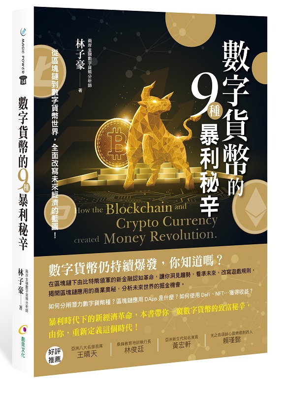 數字貨幣的9種暴利秘辛 內容簡介 數字貨幣仍持續爆發,你知道嗎? 在區塊鏈下由比特幣領軍的新金融認知革命, 讓你洞見趨勢,看準未來,改寫遊戲規則, 揭開區塊鏈應用的商業奧秘,分析未來世界的掘金機會。 暴利時代下的新經濟革命, 本書帶你一窺顛覆世界的數字貨幣致富秘辛, 由你,重新定義這個時代! 從區塊鏈到數字貨幣世界,全面改寫未來經濟的藍圖! 數字貨幣為最夯的「數位黃金」, 造就全球數百萬人短短幾年「鹹魚翻身」! 學會理解及操作數字貨幣,是現世代小資創富第一步, 現在,就是屬於你的絕佳時機,無論你是20或80歲、新手或老手, 保證你都能馬上上手,開始一起掌握未來風頭的秘辛! #找到正確工具比努力更重要 作者如何靠投資數字貨幣賺一桶金並靠挖礦賺取非工資收入,獲得財務自由,過自己喜歡的生活?而虛擬的商品又該怎麼分辨真假,並做出最正確的投資及資產配置?不要以為只有富人才能炒房地產、賺暴利,平民老百姓也是有機會翻身的。 在數字貨幣的世界裡,翻5∼10倍是很常見的事情,你不知道的事不代表就不存在,虛擬貨幣合法造就了許多的平民百萬富翁,而且各個都很年輕,你再不瞭解就落伍了! 作者只是一位普通人,從20歲懵懵懂懂到演藝圈闖蕩,四年後離場轉戰金融投資圈,隻身前往中國發展,他和很多人一樣,人生也迷惘、跌倒過,沒有大紅大紫,大富大貴,更沒含著金湯匙出世,家境普通;一直到27歲開始研究數字貨幣,才靠它改變生活。 他現在已是六間數字貨幣礦場的股東,且還在持續增加中,因此想和大家分享最實用的資訊,真真切切的幫大家資產倍增。 「很多人都想一夕致富,卻都沒有耐心去等待」 「你的投資是賺%數?還是倍數?」 本書和你分享作者的數字貨幣投資觀點,所謂看書學不會游泳,本書的目的是希望把最基礎的觀念,以最簡單的語句,闡述讓讀者理解,為何加密市場如此瘋狂,以及如何參與和降低風險。 平均每四年一次的數字貨幣牛市,都會帶進很多新的參與者與投資者進入其中。每四年的暴漲都讓很多早期參與者賺得盆滿缽滿,其中關鍵在於你有沒有把握住每次機會,所謂千金難買早知道,萬般無奈想不到,就怕知道了還做不到。出版這本書就是希望可以幫助更多讀者,除了不要被詐騙外,還能把握牛市,賺取市場上的獲利。