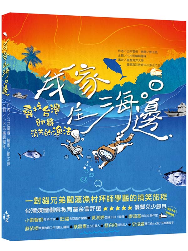 我家住海邊:尋找台灣即將消失的漁法 內容簡介 ★把台灣的海島文化保留下來,帶孩子走進漁村認識家鄉 ★透過即將失傳的8種傳統漁法,傳遞漁夫的職人精神 貓大大和貓小小是一對師徒,他們聽說江湖上有8位漁達人擁有即將失傳的漁法,便一起踏上旅程,前去拜師學藝。他們想,如果能習得這8種密技,那麼一生就有享用不盡的魚鮮啦! 但是,漁達人這麼容易找到嗎、失傳的密技有這麼容易學會嗎? 這趟旅程究竟是一場水土不服的慘痛經驗, 還是一場相見恨晚的美妙回憶呢? 但你以為海島文化就是海鮮文化,那你就錯了! 你以為漁村就是集合了各種「海味」的地方,大錯特錯! 台灣從南到北,從西到東,甚至離島,每個臨海的漁村都擁有類似但不盡相同的面貌。走進漁港,迎面撲鼻的可能是海邊風吹來的鹹味、處理魚鮮的腥味,有的是海鮮曝曬過的海味,或是烹煮海鮮的鮮味;耳朵裡傳來海潮聲、海鳥聲、漁人叫賣聲,以及數魚的歌聲;眼睛看到大小裝備不一的各式漁船,各種晾曬在太陽下的漁網、漁乾,小鎮人家,以及總是看天出海樂天下水工作的漁人;炎熱的天氣、濕涼的海風,來到漁貨現捕上岸的魚市,還能摸摸各種海鮮……簡直是一場五感爆棚的體驗之旅。 這8種漁法,8個漁港,8位漁達人, 記錄了8段台灣漁業的歷史,8個漁村小鎮的特殊風景,8種即將消失的珍貴漁業技法, 以及許許多多從事捕撈、養殖、加工漁獲的漁人精神。 我們的孩子,除了歷史偉人、世界地標, 更應該認識自己的家鄉,以及在其中辛勤工作的每一個職人。 本書特色 互動式閱讀設計 貓大大和貓小小是圖書設計的伴讀人物,他們將帶領讀者一起尋找漁達人、探索漁港,並體驗漁村文化。認識每一種漁法之前,貓大大和貓小小都會找到一些線索,和讀者一起觀察、猜測,再進入漁港,欣賞漁村景觀,逐步找尋漁達人的蹤跡,還可掃描QRCode聽聽漁達人奇妙的數魚歌。 在閱讀故事時,讀者用眼睛看,還能用耳朵聽,用雙手玩,啟動五感體驗閱讀的樂趣! 跨領域閱讀體裁 每篇故事結構分為「線索猜一猜」、「漁達人隱藏的地點」、「尋找漁達人」、「貓大貓小的探索地圖」四個部分,依照閱讀的目的,有2500字的長文,有500字短文,還有漫畫對白等的體裁,全書共約2萬5千字,適合從橋梁書過渡到長文小說的小讀者,也適合喜愛多元閱讀題材的讀者。 珍貴的漁法圖照 每一個漁法的介紹,都搭配超過5張圖照。這些圖照都是製作團隊深入當地採訪耆老,以及漁達人所記錄下來的珍貴素材,提供讀者清晰且具感受性的實際畫面。 附錄台灣漁港地圖 特別繪製台灣漁港地圖,除了標示本書介紹的6處漁港外,還呈現台灣其他200多座漁港,讀者可以看到除了台北市和南投縣以外,每個縣市都至少有1座以上的漁港,澎湖更是有67座,密度為全台之冠! 專文推薦 廖鴻基|海洋文學作家 藍白拖|背包旅人 【海島子民齊聲推薦】 小劉醫師|外科作家 旺福|金獎創作樂團 魚丁系小威|音樂家 陳郁秀|公共電視董事長 黃湘婷|金鐘主持/演員 蔡依橙|素養教育工作坊核心講師 蔡昌憲|全方位藝人 (依姓名筆劃排列) 【審定】 臺灣海洋大學臺灣海洋教育中心張正杰主任 各界回響 參加節目拍攝的小朋友: 「鰹竿釣實在太偉大、太辛苦了。等我當上總統我要立法保護這個魚法!」──第七集周子淵 「我爸爸和爺爺曾經住在澎湖,常常聽我爸說起澎湖的事情,但我都沒有去過澎湖。」──第五集林首柏 「這兩天一夜的漁村生活是他這輩子最好玩的體驗。」──第四集陳元豪 【編輯小語】 這個節目的企畫讓我想起小時候,我們過年總是要跟父母回到台南的娘家,去過上個幾天。那幾天就是我們小孩最開心的時刻,我們會去魚塭划竹筏、在岸邊抓螃蟹,在魚塭旁看著阿姨們整理蚵架,我們就找尋當中沒被剝到的蚵來吃,那也是我第一次知道,原來蚵是用「種」的。 現在的孩子對於海邊、漁村的感覺,好像就是太陽很曬、魚腥味很重,但不是的,漁村生活其實沒有什麼不同,很多漁夫做的工作都非常有意思,尤其是承襲傳統漁法的,都對自然很友善,那麼現代面臨到海洋資源的匱乏,是不是要從這些魚法來反思呢?我們把節目做成圖書,讓孩子從讀故事,走進漁村,發現「原來是這樣的呀!」有著和我小時候一樣的感嘆,那就太好了。