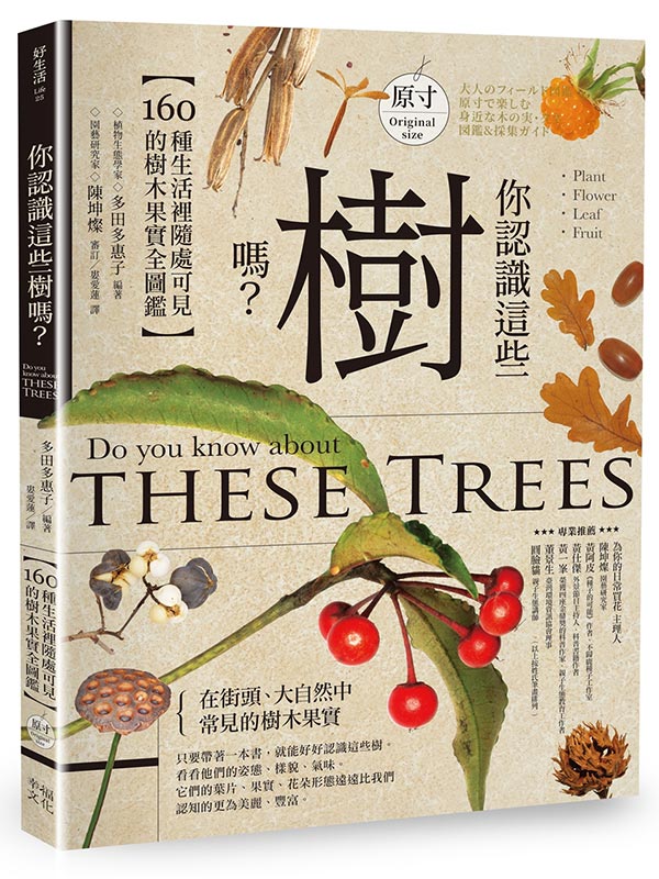 你認識這些樹嗎?:160種生活裡隨處可見的樹木果實全圖鑑 內容簡介 【最詳盡的樹木果實全彩圖鑑】 只要一本書就能觀察、認識160種在大自然中常見的樹木果實 附有原寸照片以方便比對 說到「樹木、果實」你會想到什麼呢?是路邊、公園的行道樹?是山林裡的松果、橡木、無患子?抑或是美味好吃的開心果、腰果、銀杏? 你知道頻婆的黑色種子可以吃嗎? 植物雖然不會說話,卻和我們的關係密切,是人們與大自然的連結,只要身在山林花卉之中就能療癒內心,讓我們暫時逃離種種疲憊和壓力。 只要帶著一本書,就能好好觀賞、認識這些日日隨處可見的樹木和果實。看看他們的姿態、樣貌、氣味。它們的葉片、種籽、花朵形態遠遠比我們認知的更為美麗、豐富。 樹木為了繁衍下一代求生,會透過結下果實,吸引動物吃下或儲存而運送、遷移。或是長出鱗翅、羽毛、絨毛,讓果實可以飛翔、順河流帶走,也可能是被鳥類吞下而移動;而種籽利用風、水,或是借助動物的幫忙,往全新的場所旅行。 本書精選並介紹這些每天在你生活周遭的160種各地樹木、果實,讓我們認識他們的構造、機能、花型和特性。搭配高品質的照片介紹各種果實知識,以及作者特有的感性化文字,喜愛植物科學的讀者千萬不要錯過! ▶▶▶這些,你可能不知道的植物小常識 ◆植物的小心機:紅色的果實為什麼難吃? 朱砂根或南天竹的果實看起來嬌嫩欲滴,結果吃起來又苦又澀,大部份都難以下嚥。為什麼這麼難吃呢? 因為果實如果美味可口,那麼鳥兒便會留在當場一直吃,那麼種籽會原地被排出,這樣就沒有運送效果了。為了把種籽送得更遠、傳播得更廣,所以植物故意結出難吃的果實,這樣做反倒可以控制鳥類一次啄食的量。 棕耳鵯會啄食南天竹的果實,但吃幾顆就飛走了。這是因為南天竹的果實可做為藥材,裡面含有有毒的成份。毒也是植物的策略之一。 ◆南京椴是佛祖悟道的菩提樹的替身 南京椴原產於中國,被視為佛木,在日本寺院中廣為種植。然而事實上它是南方樹種,與佛祖在樹下開悟的桑科菩提樹完全不同。這裡的南京椴雖只是外表看起來與菩提樹相似的「替身」,但其果核常被用來製作佛珠。 ◆無患子是天然清潔劑 無患子的果皮含有可以起泡的皂苷成份。剝下來的果皮和少量的水一起放入瓶子裡搖一搖,一下子就會產生許多泡泡。 ◆種子是時光旅行者 種子利用風、水或是動物的助力往全新的場所旅行。不管環境是穩定或是惡劣,乾燥的種子都能以休眠的狀態輕鬆熬過酷暑、極寒或是乾燥的環境。 ․利用風力飛行的種子:如梧桐、蒲公英等 ․由動物運送的種子:如櫸樹、歐洲七葉樹、羅漢松等 ◆枸杞是茄科的藥用植物 乍看之下與辣椒相似,紅寶石般的紅色果實生吃味道微苦微甜,經乾燥後在市面上販售,被用於料理或養生酒。 ◆果實的種種用途 ․種子可以做許多有趣的手做,如橡實陀螺、薏苡項鍊等。 •植物染:用海州常山的靛藍色果實染出美麗的水藍色。 •用於食物的染色劑:例如梔子花果實的黃色色素可用於醃蘿蔔、栗金團以及糕點等食品中。 •榨油:橄欖、芝麻、菜籽。 ․入藥:枸杞、紅棗、八角等。 本書特色 這本圖鑑裡介紹了許多植物,附上果實、種籽的原寸照片,方便大家拿在手上細細觀察、比對那些在居家附近、公園、路旁常見的植物,以及一些山林、海邊可探訪的植物果實。 請以照片做為依據,試著一起尋找一下吧! 你會發現生活中有很多豐富有趣的植物和事物,日日都在你身邊。 專業推薦 (以下按姓氏筆畫排列) 為你的日常買花 主理人 推薦語:跟著果實去旅行:從微小的果實窺探植物的祕密所在。 陳坤燦|園藝研究家 推薦語:大自然的寶石等你來收集。 黃阿皮|《種子的可能》作者、不歸鹿種子工作室 推薦語:簡明易懂的入門圖鑑,從身邊可遇見和撿拾的果實種子,去認識它們的種類結構、各類小知識及生活應用。 黃仕傑|外景節目主持人、科普書籍作者 推薦語:被這些常見有趣的果實圍繞,真讓人感到滿足與幸福。 黃一峯|榮獲四座金鼎獎的科普作家、親子生態教育工作者 推薦語:樹木的果實對我來說就是「好吃又好玩」的藝術品,它們多樣且豐富的造型、色彩,很難不被吸引,不管是用來吃、欣賞、收集都和我們生活息息相關,讓我們透過這本書來進入果實美麗又沒人的世界吧! 董景生|臺灣環境資訊協會理事 推薦語: 概念清晰的樹果圖鑑,描繪出詳盡的科學知識。 圓臉貓|親子生態講師 推薦語:跟著果實書一起尋寶,了解身邊的樹木,探索他們奇妙的旅行。