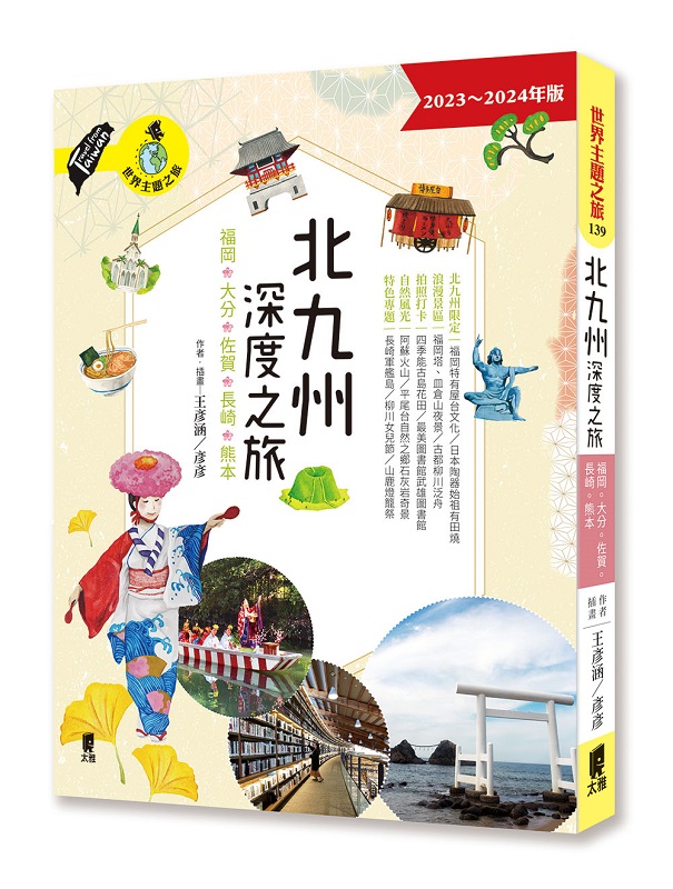 北九州深度之旅:福岡、大分、佐賀、長崎、熊本 內容簡介 來一趟期待已久,在日本自在旅行的幸福時刻! 提供疫後最新最完全北九州旅遊資訊, 添加赴日防疫資訊整理,想要出發正是時候! 帶您慢遊大魚神社寧靜美麗的海中鳥居、阿蘇火山壯觀的自然地貌…… 前往出現在《龍貓》裡的翠綠小徑「龍貓之森」、 還有最美圖書館「武雄圖書館」等時下年輕人熱門景點 喜愛拍照的人,一定要到能古島花田、糸島天使翅膀等文青打卡景點; 若你是歷史迷,就去軍艦島、長崎原爆資料館等遺跡走動; 想要全家出遊,療癒身心的貓島或麵包超人博物館都是親子旅行的好選擇。 還有參加熱鬧非凡的祭典、享受療效各異的溫泉, 品嘗水炊鍋、蒸籠鰻魚飯、小城羊羹等道地美食, 以及體驗福岡特有屋台、熊本鄉村「田樂」飲食文化…… 多種精采等著你去探索。 作者全面檢視各地資訊,提供讀者詳盡的最新資訊, 並透過充滿美感的照片及手繪插圖,增添書籍趣味與質感, 還等什麼?快來規畫一趟不同面貌的北九州之旅吧∼ 本書特色 【快覽北九州五縣】 ◎福岡縣:為九州經濟、交通的中心,購物必逛天神、大名等福岡市最熱鬧的街區,或至福岡塔一覽九州最繁華的都市景色。書中分區介紹福岡縣重要城市,包含以祈求學問的代表神社「太宰府天滿宮」聞名的太宰府市、泛舟古都柳川市、世界文化遺產沖之島所在宗像市,以及擁有日本百大古城「小倉城」的北九州市等。此外,還教你如何體驗福岡特有的屋台文化,並推薦如水炊鍋、博多拉麵等道地料理。 ◎大分縣:泡湯首選地──別府,在此更要安排一趟溫泉地獄巡禮,沿途能遊覽各種不同特色的泉池,甚至能看見鱷魚生活於溫泉裡的驚奇景象;除了享受由布院的人氣溫泉外,還有如仙境般的金鱗湖、九重「夢」大吊橋等自然景點,都是秋季賞楓時節的好去處。 ◎佐賀縣:歷史文化之都,有歷代將軍喜愛的武雄溫泉外,不要錯過有護膚之效的嬉野美肌湯!別忘了,至日本最美的武雄圖書館打卡,再帶個揚名海外的「有田燒」傳統工藝回家。11月佐賀的象徵活動──國際熱氣球節,可觀賞精采的熱氣球競賽以及百顆熱氣球齊升空的壯觀畫面。 ◎長崎縣:充滿異國風情的城市,如大浦天主堂、哥拉巴園等外國人打造的教堂與故居建築,還可品嘗和洋交匯後誕生的佐世保漢堡、土耳其飯;到紀錄當地經歷核爆歷史的長崎原爆資料館,祈願世界和平的平和公園,以及世人紛紛想揭開的戰後最神祕海上遺跡──軍艦島。 ◎熊本縣:位於九州中央,以豐富的自然資源聞名,可欣賞壯麗的阿蘇火山區自然地貌,挺過大地震的熊本城,如米粒般可愛的「米塚」小山丘;還有去市區的部長辦公室找尋最夯的吉祥物熊本熊部長外,還推薦體驗熊本鄉土料理「田樂」烤物,以及品嘗濃厚焦香蒜味的道地熊本拉麵。 【時下最夯的景點】 書中羅列北九州目前最熱門的景點:作者貼心彙整了糸島的天使翅膀等文青景點;若是日本國民偶像嵐(Arashi)的粉絲,必遊與偶像同名的櫻井、潤和二宮神社等福岡神社,並到訪明星拍攝地;而動畫迷可至誕生松本零士的北九州市,尋找漫畫人物圖樣的人口蓋和銅像;熱血球迷就到福岡巨蛋幫軟銀鷹吶喊加油,更不要錯過參觀巨蛋後台的機會。 【精心手繪插圖】 全書穿插作者親手繪製的細膩水彩插畫,以步驟式的圖解說明參拜神社教學等,內頁溫暖又可愛的手繪插圖,充分展現北九州舒適休閒的氛圍。 【熱鬧盛大的慶典】 以專題詳細介紹北九州的慶典,作者熱血追擊現場,帶你貼近日本當地文化,直擊福岡的「博多祇園山笠祭」、溫泉王國大分的「別府八湯溫泉祭典」、佐賀巨大曳山車奔跑的「唐津宮日祭」、熊本頭戴金燈籠的千人舞蹈「山鹿燈籠祭」等熱鬧慶典。 【最詳盡的北九州五縣指南】 本書分區導覽介紹北九州五縣的景點,並有詳細的聯外及市內交通指南,精選各縣獨特的美食及經典物產,另還有設計「觀光案內所」,提供觀光資訊與留意事項,以及「旅遊小學堂」告訴你更深度的旅遊知識。另附5日、7日及10日行程規畫。