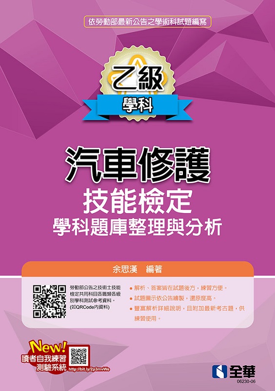 乙級汽車修護技能檢定學科題庫整理與分析(2022最新版) 內容簡介 依據勞動部勞動力發展署技能檢定中心公佈之最新乙級技術士技能檢定題庫編輯而成,且依公告之工作項目分析編篡而成,包括7大工作項目配合圖表加以精闢解析,希望對每一位想通過技能檢定的讀者能有所助益。試題配合圖片說明及詳盡的解說,對每一位想通過技能檢定之讀者必定大有助益。 本書特色 "1.依據勞動部勞動力發展署技能檢定中心公佈之最新乙級技術士技能檢定題庫編輯而成,且依公告之工作項目分析編篡而成,包括7大工作項目配合圖表加以精闢解析,希望對每一位想通過技能檢定的讀者能有所助益。試題配合圖片說明及詳盡的解說,對每一位想通過技能檢定之讀者必定大有助益。 2.於民國82年針對汽車五大系統配合圖表對題目提出解析,時至民國103年12月勞動部勞動力發展署技能檢定中心有鑑於要推動乙級檢定進入即測即評及發證系統,所以乙級學科更改為題庫測驗;因此考生只要把題庫看懂看熟必定可以通過測驗。 "