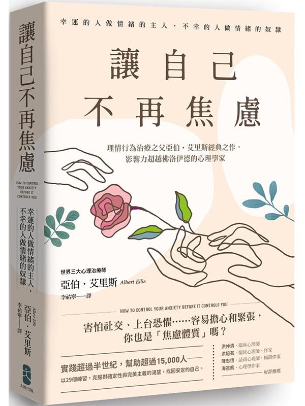 讓自己不再焦慮:【幸運的人做情緒的主人,不幸的人做情緒的奴隸】理情行為治療之父亞伯.艾里斯經典之作,影響力超越佛洛伊德的心理學家 內容簡介 害怕社交、上台恐懼……容易擔心和緊張, 你也是「焦慮體質」嗎? 享譽全球,世界三大心理師亞伯.艾里斯 實踐超過半世紀,幫助超過15,000人── 以29個練習,克服對確定性與完美主義的渴望, 找回安定的自己。 「19歲以前的我,一直是極端焦慮的人。 我只是想要成為沒那麼焦慮、活得更快樂的人。 而在很短的時間內,我做到了。」 ──亞伯.艾里斯 ★ 「理情行為治療之父」艾里斯不朽經典,正式授權繁中版 ★ 理情行為治療(REBT)──世界上最廣泛實踐的心理治療形式 ★ 想法�情緒�行為,任何人都適用的簡單心理治療法!適用範圍廣、實用性強、見效快 ★ 「在現代心理治療所產生的影響力,沒有人能大於亞伯.艾里斯,就連佛洛伊德也不例外。」──《今日心理學》 ★ 獨家收錄!231則智慧箴言,讓內心充滿力量,感受安定、自由與無限可能 你是否,每天活在自我苛求的念頭中: 「我絕對不能失敗。我無法承受自己表現差勁。」 「我必須做到完美,否則我就是沒用的人。」 「我必須得到別人的認可。」 「我無法承受他們待我不公!」 「我失去了非常珍貴的感情,以後我再也沒辦法談戀愛,其他重要的關係也會被我搞砸……」 但這些,都是「非理性信念」, 它們往往會升級成嚴重的焦慮與恐慌, 拖垮我們的表現、人際關係與生活品質。 如果你或親朋好友,正為焦慮問題尋求解方: 本書以29個練習,看清憂鬱、焦慮、恐慌、暴怒等情緒的根源, 用實踐超過50年的自助療法,走出情緒風暴。 18個真實案例,見證當事人如何學會接納自己、善待他人, 讓自己不再焦慮,邁向更快樂、健康、踏實的人生。 Step by Step,跟著上萬名治癒者,享受內心的平靜與自在: ● 「ABCDE轉念法」,質疑「理所當然」的想法,真正從痛苦中解脫 ● 「理情心像」,讓情緒更健康,不再沉溺於負面思緒 ● 「重新架構法」,跳脫有害的想法,找到突破逆境的勇氣 ● 「克服羞愧感練習」,撕下負面標籤,走過羞辱創傷 ● 「角色扮演法」,探究內心不安,疏通心理糾結 ● 「無條件自我接納」,與真實的自己和解,學會放鬆、放過與放下 心理專家.療癒推薦 洪仲清|臨床心理師 洪培芸|臨床心理師、作家 陳志恆|諮商心理師、暢銷作家 海苔熊|心理學作家 「原來我們以為的『大師』也跟我們一樣,都有生命的困難,都有屬於自己的人生障礙。然而,亞伯•艾里斯卻將折磨著他的演講焦慮、社交焦慮……化為撐竿跳的動能,跨越人生的障礙賽。透過本書,不再被焦慮局限,從而突破極限。」──臨床心理師、作家 洪培芸 「是的,大師也會焦慮!亞伯.艾里斯博士在本書中分享了他如何運用自己所學,克服自己的公開演講和社交焦慮,並把這些寶貴經驗和智慧融入到了29種策略中,讓你能自由選擇最適合自己的方法來應對各種焦慮。書中提到的正向想像與建模技巧,就像是給心靈一個讚,幫助你在各種情境中保持冷靜和自信。而放鬆與認知分心法則像是一場心靈SPA,此外透過冥想、瑜伽等方式,也能找到片刻寧靜,擺脫憂慮。讀完之後你會發現,焦慮是一朵帶你飛的觔斗雲,當你能夠駕馭它,你會發現底下有更大更廣闊的天空!」——心理學作家海苔熊