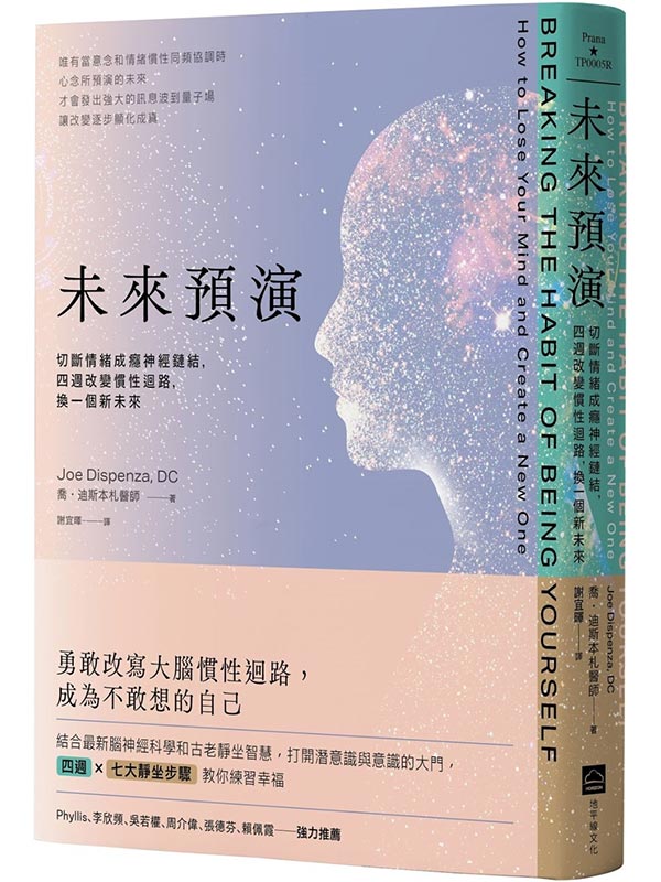 未來預演(二版):切斷情緒成癮神經鏈結,四週改變慣性腦迴路,換一個新未來 內容簡介 心靈科學先驅喬・迪斯本札醫師代表作 結合最新腦神經科學和古老靜坐智慧,打開潛意識與意識的大門, 勇敢改寫大腦慣性迴路,成為不敢想的自己 四週X七大靜坐步驟教你練習幸福 ★Amazon萬人點讚★ 當意念與情緒合一時,潛意識才會真正有動能發送訊息到量子力場, 讓你的意念成為真實的生命經驗。 大腦不再是過去的紀錄器,而是未來的地圖──你已經活在你想要的未來之中 讓喬・迪斯本札醫師教你 重新設定大腦迴路,修剪舊自我的突觸連結,消除內外差距 只要二十八天,就能讓身體漸漸熟悉新的大腦迴路,養成你的第二天性,塑造全新的自我 ◎為何舊習慣無法改變? 我們日常的感受和情緒都是經驗的產物,情緒積累的結果就是每次碰到一樣的事都產生同樣的情緒,甚至每次回想都會活化且強化同一組腦迴路。身體比意識更善於記憶,這時你的身體代替了你的心,而這就是所謂的習慣。 要改變習慣,就要切斷身體操縱一切的迴路。 要打破自我的舊習慣,你的思考必需凌駕你的生活環境,必須超越記憶在身體裡的感受,並以一個新的時間線來生活。 ◎單單正面思考為什麼沒有用? 長久以來,身體已經習慣與罪惡感、內疚、恐懼、焦慮等負面情緒為伍,成為潛意識中內建的程式,而當你的意識想要改變,身體卻會持續發送訊號給大腦,讓你產生熟悉的負面情緒,拒絕被改變。 這也是為什麼單純的正面思考無法帶來改變,你的心想要正面思考,但你的身體卻充滿負面感受,只要身和心持續對抗,改變就無法發生。 ◎關掉求生模式 現代人大多都活在壓力中,也就是求生模式。身體、環境、時間三巨頭,逼迫我們不斷對外再做出反應,擔心健康問題(身體)、付不出房貸(環境)或時間期限的緊迫,導致「求生」上癮。 而我們大部分的想法和感受都被身體、環境、時間這三個要素主導,於是我們依賴外在條件來定義自己的身份,讓過去的一切定義了我們的未來。 唯有活得不像自己,才能創造不可預期的未來。 ◎摧毀大腦記憶裡舊的自我,解除潛意識的抵抗,讓改變自動發生 如果你想變得快樂,就要先停止去想那些會讓你不快樂的想法; 如果你渴望變得有錢,你要下定決心,停止做那些會讓你變窮的事情; 如果你想變得健康,你必須停止不健康的生活方式。 這些例子都在告訴你,無論你要改變什麼,首先都必須下決心停止做舊的自己,直到你能騰出空間給新的人格(包括想法、行動和實踐)。 ◎靜坐改變大腦的原理 1.變得更熟悉自己:靜坐藉著閉上眼睛,消除外界的刺激,讓身體處於靜止狀態,你就能夠專注地覺察到自己正在想什麼,以及有什麼感覺。一旦你能意識到身心的無意識狀態,並對自己無意識的自動程式變得「熟悉」,你便從「成為自己」轉變到「觀察自己」,開始了拆除舊自我的過程。 2.耕耘自我:靜坐的「正念專注」,能讓你耕耘出一個新的自我,只要你主動並有意識地思考自己想要「成為」的樣子,這個沉思的過程會建立新的神經網絡,神經元會開始發射,並以新的序列、模式和組合方式連接,在心靈花園中播下新思想、行為和情緒的種子。你將越來越熟悉你的新慣性,直到它成為你的第二天性,開創出新的現實。 3.從無意識變得有意識:當我們變得有意識和覺察,熟悉且願意去採取必要的行動,來消除不想要的特質,耕耘一個想要的新自我,內外的不一致便會消失,改變,就這樣自然發生了。 名人推薦 Phyllis(零雜物作者) 李欣頻(作家) 吳若權(作家、顧問、廣播節目主持人) 周介偉(「光中心」創辦人) 張德芬(身心靈作家) 賴佩霞(魅麗雜誌發行人/身心靈老師/作家)──強力推薦 各界大師盛譽 喬.迪斯本札醫生這本重新連接你心靈和情緒迴路的指南,有趣且易懂,並傳達一個簡單有力的訊息:你今天所想的一切,決定了你明天的人生。──琳恩.麥塔嘉(Lynne McTaggart),暢銷書《療癒場》(The Field)、《念力的祕密》(The Intention Experiment)作者 本書是先進科學和現實生活應用的強大結合,交織成日常生活的完美配方。…… 科學知識的層次結構告訴我們,當新發現改變了我們對原子的了解,我們對自己和腦的認識也必須改變。透過這本書簡明扼要的十四個章節,喬.迪斯本札醫生運用人生歷練,來描述我們使用大腦方法的微妙改變,在我們的身體、生活和人際關係上,如何成為確切改變我們人生的量子關鍵。這本經過仔細研究、可靠與實用的手冊,讓你會想要在個人練習時隨時擺在手邊參考。在書中,迪斯本札醫生採取了容易使用並按部就班的技術,讓每個人都有機會以自己的量子場試驗,找出對自己效果最好的方式……從找出哪些想法讓我們深陷舊信念的有效練習,到讓我們突破自我設限的簡單實踐,本書是成為人生勝利組的指南,多希望能在我們念小學一年級時就拿到了。如果你一直都明白,你該學到的知識不是幾堂生物課能給你的,卻對科學的專業術語望而生畏,那麼這就是你一直在等待的完美作品!」──桂格.布萊登(Gregg Braden),暢銷書《無量之網》(The Divine Matrix)與《深埋的真相》(Deep Truth)作者 喬.迪斯本札醫生透過本書帶給你力量,讓你放下負面信念,擁抱正面思維。這本充滿智慧、內容充實且實用的書,將幫你成為最好、最自由的自我。這樣一來,就會如迪斯本札醫生所說的,你就可以「走向你自己決定