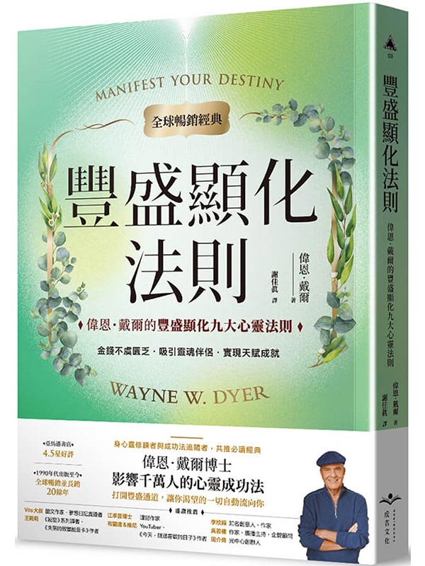作者簡介 偉恩.戴爾(Wayne W. Dyer) 擁有輔導諮商博士學位的偉恩.戴爾,是享譽國際的心靈與激勵大師,也是國際暢銷作家。關注涵蓋心理、激勵到靈性等領域,除了透過演講、工作坊,也經常在廣播電視媒體與如歐普拉等知名意見領袖對談,影響力遍及全球。一生逾四十本著作,多數都是暢銷書且被翻譯成多國語言流傳世界各角落,有許多經典著作更是破百萬冊暢銷書。 最知名作品除了《豐盛顯化法則》(Manifest Your Destiny)之外,還包含《為什麼你不敢面對真實的自己》(Your Erroneous Zones)、《獲致成功與內在平靜的十個秘訣》(10 Secrets for Success and Inner Peace)、《意念的力量》(The Power of Intention)、《靈性啟發》(Inspiration)等書。 譯者簡介 謝佳真 自由譯者,譯有《思考致富實踐版套書》、《峰與谷》、《與成功對頻》、《靈魂契約》、《預見療癒》、《潛富》等書。賜教信箱:oggjbmc@gmail.com。