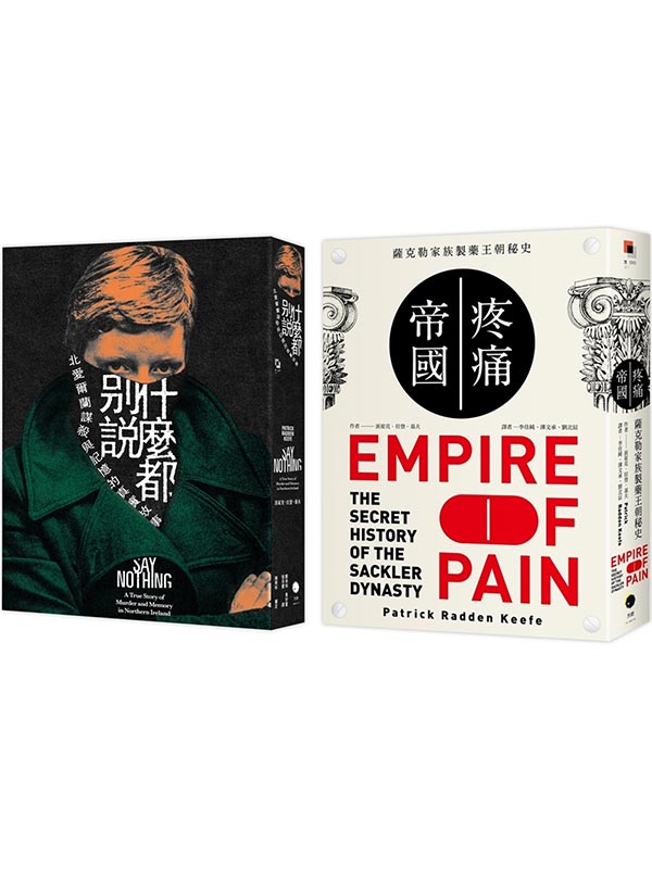 派崔克.拉登.基夫得獎作品(2冊套書)什麼都別說+疼痛帝國 內容簡介 2019年美國國家書評人協會獎 2019年喬治.歐威爾獎 2020年亞瑟.羅斯圖書獎金獎 2019年歐巴馬最愛書籍 《紐約時報》暢銷書 亞馬遜近九千讀者4.6顆星好評 Goodreads逾八萬讀者4.5顆星好評 「1972那年,三十八歲的寡婦珍.麥康維爾(Jean McConville)膝下十子,蒙面入侵者在貝爾法斯特將她從家裡強行帶走。這本書是步調如小說般緊湊的精密報導,基夫以麥康維爾的謀殺案為主軸,牽引出北愛爾蘭問題的歷史。他訪問了衝突雙方的參與者,將那個時代悲劇的毀滅與虛耗轉化成鏗鏘有力、引人入勝的長篇故事。」 ──《紐約時報書評》(New York Times Book Review) 珍.麥康維爾(Jean McConville)綁架案,可說是北愛問題血腥衝突中極惡名昭彰的事件之一。當地人都知道愛爾蘭共和軍(Irish Republican Army,簡稱IRA)是幕後主謀,但是在恐懼與為理想癡狂的氛圍下,沒有人敢挺身而出。2003年,北愛爾蘭簽下協議換取得來不易的和平五年後,一處海灘上尋獲了一具人類骨骸。麥康維爾家的孩子一聽說死者的洋裝上別有一個藍色安全別針,就知道那正是他們的母親。因為家裡孩子眾多,她總是隨身別著別針,方便固定尿布或破損的衣物。 派崔克.拉登.基夫這本令人著迷的著作,書名啟發自北愛爾蘭詩人薛穆斯.希尼(Seamus Heaney)的詩作〈無論說什麼,說了等於沒說〉(Whatever You Say, Say Nothing),敘述北愛爾蘭充滿怨恨的衝突與其後續影響。全書以麥康維爾案開場,描寫受到血腥游擊戰摧毀的社會,而這場戰爭的後果從未得到重視。殘酷的暴力衝突,不僅讓麥康維爾家的孩子留下永遠的創傷──苦苦盼到的和平與愛爾蘭統一的目標差距甚遠,讓愛爾蘭共和軍的成員滿腔怒火,而其犯下的殺人罪行究竟是可以被合理化的戰爭行為?還是單純的謀殺? 《什麼都別說》以令人驚嘆、錯綜複雜的手法描寫北愛爾蘭惡名昭彰的殺人事件與其破壞力極強的後果,用文字編織出一個充滿熱忱、背叛、復仇和悲痛的世界。書中栩栩如生記錄了激進又魯莽的愛爾蘭共和軍恐怖分子,如桃樂絲.普萊斯(Dolours Price),年紀輕輕就在倫敦發動炸彈攻擊、揪出必須處死的告密者。還有令人聞風喪膽的共和軍精神領袖「黑人」布蘭登.休斯(Brendan Hughes)、英國陸軍的間諜遊戲和見不得光的陰謀,以及與政府協議換取和平、卻矢口否認共和軍過往而背叛忠心戰友的傑瑞.亞當斯(Gerry Adams)。