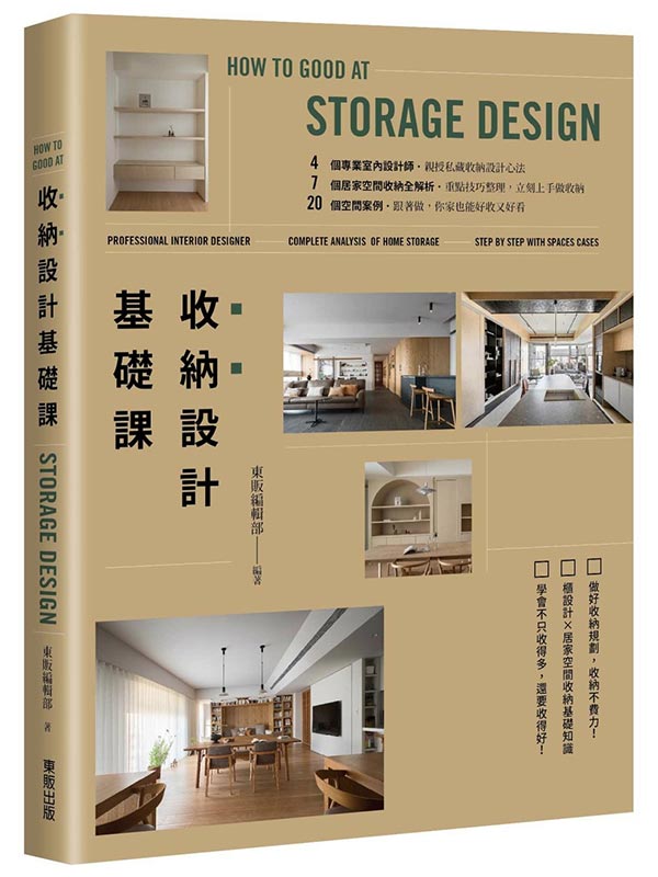 目錄 Chapter1關於收納,你該懂的這些事 Point1收納與空間的關係 空間01|玄關 空間02|客廳 空間03|餐廚 空間04|臥房 空間05|小孩房 空間06|書房 空間07|衛浴 Point2做對收納的10個關鍵技巧 關鍵01|適當斷捨離,別讓收納佔去生活空間 關鍵02|收納物做好整理和歸類,就能好好收 關鍵03|融入生活動線,用櫥櫃做無痛收納 關鍵04|根據使用頻率規劃,讓收納變簡單 關鍵05|專剋畸零地!用收納完美弭平凹凸 關鍵06|門櫃混搭開放收納,避免櫃體壓迫感 關鍵07|善用層板、五金,櫃內收納更有彈性 關鍵08|洞洞板加持,立體收納有序又整齊 關鍵09|選用收納功能家具,助增儲物能量 關鍵10|難收納的個性物件可打造主題專區 Chapter2家的收納,你可以這樣做 Point1從專家思維了解居家收納 .十一日晴室內裝修設計 .木介空間設計 .日作空間設計 .構設計 Point2找到適合的收納櫃設計 設計1|木作收納櫃 設計2|系統收納櫃 設計3|活動式收納 Chapter3空間實例 01拉大量體尺寸暗藏收納容量 02澳客風的開放、悠閒與趣味 03書櫃結合臥榻打造書窩區,半展示層架不易堆雜物視覺更整齊 04大型儲物櫃、儲藏間概念,翻轉老公寓使用性 05隱藏式餐桌與斜切櫃體,釋放狹長空間 06微調格局動線,創造花藝工作區、大型複合收納間 07微調廚房牆面,爭取最大收納量 08簡約療癒小宅,內含海量收納設計巧思 09翻玩收納!隨處可收好清爽 10以機能區分段截長牆、增收納 11大型物件集中收納,陳列式收納打造居家藝廊 12開放層板、書架,滿足藏書人的家 13三房老屋改兩房,嵌入式櫃體整合空間機能 14藉牆面增減、挪移升級收納與開闊 15拆隔牆、併面積統整收納好利用 16不只輕甜、爆量收納也不怕 17以斜角擴增收納、化解風水煞氣 18收藏法式生活的珠寶盒美宅 19巧妙規劃收納動線,找回開闊有序的生活 20納入充裕收納,空間轉換更有彈性 附錄 .DESIGNER DATA