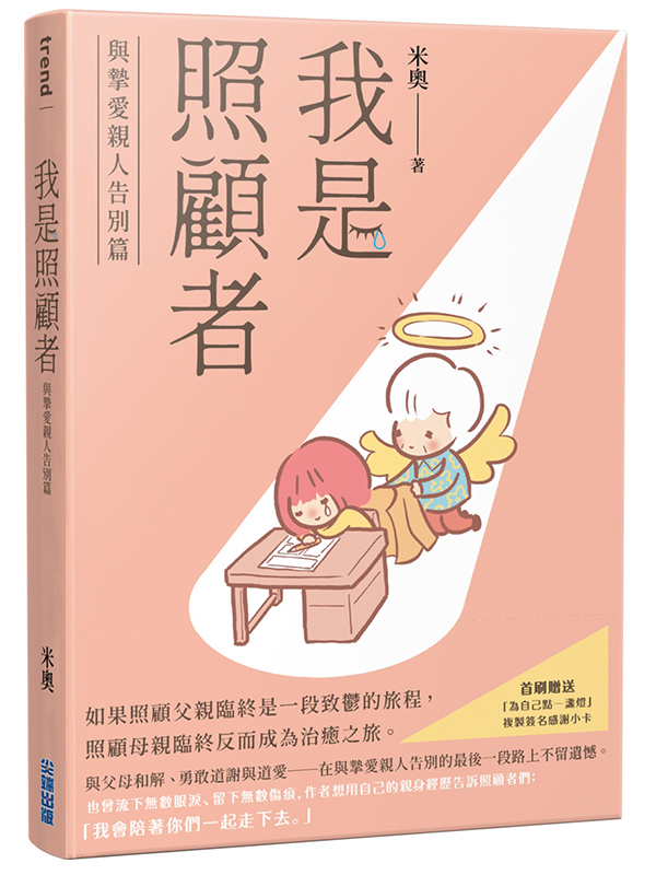 我是照顧者-與摯愛親人告別篇- 內容簡介 ❖網路連載轉發破萬次,逾2,000,000名讀者為之動容 ❖「誰是照顧者?」高齡化社會的臺灣不得不正視的問題 ❖本書特別收錄全新未公開篇章 如果照顧父親臨終是一段致鬱的旅程, 照顧母親臨終反而成為治癒之旅。 與父母和解、勇敢道謝與道愛── 在與摯愛親人告別的最後一段路上不留遺憾。 ▍內容簡介 「我會當一個── 握著她的手直到最後, 絕不讓她寂寞的孩子。」 儘管父親臨終的照顧旅程既漫長又艱難, 但在母親面臨失能危機的時刻, 作者米奧再次義無反顧地擔起責任。 無論事前做了多少心理準備, 想起「譫妄症狀」身軀就止不住顫抖, 然而為了陪伴摯愛家人走完最後一程, 仍願意如飛蛾撲火般投入這場戰役。 這是米奧的故事,也是每一位照顧者的故事。 照顧的路上不斷消磨體力、消磨精神、消磨愛, 最後甚至可能將自我也消磨殆盡…… 也曾流下無數眼淚、留下無數傷痕的米奧, 想用自己的親身經歷告訴勇敢的照顧者們: 「好好照顧自己,我們一起走下去。」 ▍獻給每位照顧者 目前台灣大約有76萬名失能、失智及身心障礙者,其中將近六成完全仰賴家庭照護,而照顧者中有七成以上都是女性。 因此作者在最初的篇章就告訴大家「女性的自由是有期限的」。 家庭照顧責任經常自然而然地落在女性身上,卻很少人重視這個問題。照顧者們多數必須離開職場、失去自己的生活,並覺得自己孤立無援。 作者試著透過親身經驗,分享「照顧責任分攤問題」、「如何面對生死離別」、應該「在父母健康時預做準備」等議題,分擔照顧者的負擔,給予每位即將加入或正在經歷照顧旅程的人們一顆定心丸! ▍第一人稱的圖文書 作者用可愛的角色,以第一人稱的方式描繪照顧與生死離別的沉重話題。 在作者娓娓道來的過程中,我們得以用旁觀者的身分加入這趟傷痕累累的旅程,看作者因為照顧壓力瀕臨身心崩潰,再一步步地找回照顧與生活之間的平衡,並利用繪畫找到禁錮自己的悲傷盒子的鑰匙。 這是一趟悲傷的旅程,也是一趟自我療癒與修復的旅程。 當我們必須背負另一個人的餘生、全心全意照顧摯愛家人時,也千萬不要忘記,好好照顧自己。