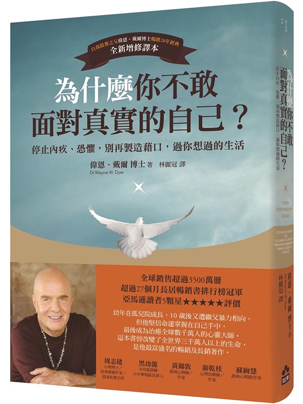 作者簡介 偉恩.戴爾博士 (Dr. Wayne W. Dyer, 1940-2015) 偉恩州立大學(Wayne State University)教育諮詢博士,曾任紐約聖約翰大學(St. John’s University)教授。是國際級的心理學大師、自我啟發領域的作家與演說家,著作超過四十本書,上過數千次電視與電台節目,並錄有許多影音課程,美國國家公共電視還曾特別報導他的著作。《為什麼你不敢面對真實的自己》是他最富盛名的暢銷及長銷著作,這本書曾改變了全世界三千萬人以上,至今仍為亞馬遜的五顆星暢銷作品。 其他中譯作品包括:《夢想的顯化藝術》(Wishes Fulfilled:Mastering the Art of Manifesting)、《還在找藉口嗎?別讓基因、家庭、文化等等不成理由的理由阻擋你實現夢想》(EXCUSES BEGONE! How to Change Lifelong, Self-Defeating Thinking Habits)、《智慧81:一日一則.改變生命的奇蹟》(Change your thoughts, Change your life)、《看見神性生命的奇蹟》(I can see clearly now)、《心想事成的九大心靈法則》(Manifest your destiny)。另有紐約時報暢銷書《獲致成功與內在平靜的十個秘訣》(10 Secrets for Success and Inner Peace)、《意念的力量》(The Power of Intention)、《靈性啟發》(Inspiration)等作品。 作者網址為:www.DrWayneDyer.com然草藥全書》記錄了她經過驗證、最豐富完整的草藥配方而廣受專業人士及一般讀者推崇。 譯者簡介 林麗冠 台大中文系畢業,美國密蘇里大學新聞碩士,譯有《金融與美好社會》、《分裂的全球》、《玩具盒裡的創新》(榮獲2014年金書獎)、《獲利的魔鬼,就躲在細節裡》(榮獲2012年金書獎)、《白地策略》、《丟掉50樣東西,找回100分人生》等數十本書。