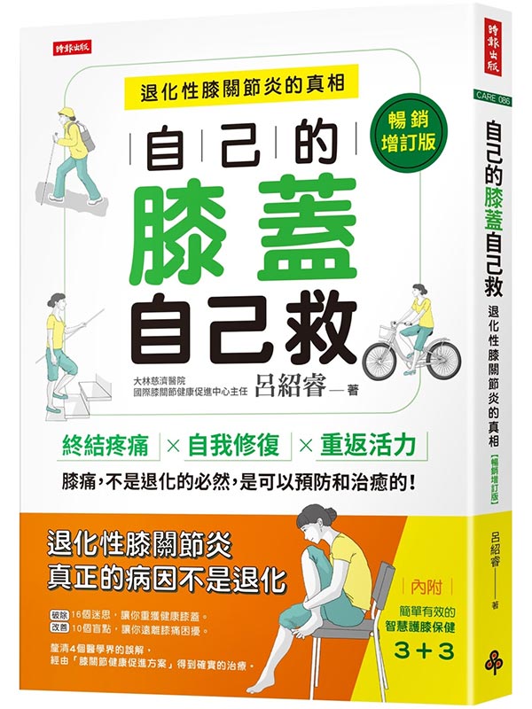 自己的膝蓋自己救:退化性膝關節炎的真相【暢銷增訂版】 內容簡介 退化性膝關節炎,真正的病因不是退化 破除16個迷思,讓你重獲健康膝蓋。 改善10個盲點,讓你遠離膝痛困擾。 釐清4個醫學界的誤解, \【終結疼痛】✕【自我修復】✕【重返活力】/ 經由「膝關節健康促進方案」得到確實的治療。 儘管大家都知道「行走自如」的重要性,但日常生活中的錯誤習 慣卻不斷加劇膝關節的損傷。是時候重新檢視並正視膝關節保健的真 相了! ☑ 走路或上下樓梯時感到疼痛。 ☑ 久站或久坐後,膝關節僵硬難以活動。 ☑ 進行日常活動時膝關節發出聲響。 ☑ 膝關節腫脹,影響日常生活。 ☑ 對於膝關節未來的健康狀況感到擔憂。 若您勾選了以上任一項,那麼這本書將成為您膝關節健康的轉 機。 拯救膝蓋,從現在開始! 揭開膝關節健康的新紀元 95%的退化性膝關節炎真正病因 不是「退化」,「內側摩擦現象」才是關鍵。 ◡◠◡◠◡◠◡◠◡◠◡◠◡◠◡◠ ✦【每位關注膝關節健康的你】✦ ◡◠◡◠◡◠◡◠◡◠◡◠◡◠◡ ►►► 因膝痛而行動不便? ►►► 聽說年紀一大,膝關節就註定退化無法逆轉? ►►► 試過各種治療方法卻仍舊膝痛? ►►► 擔憂運動只會使膝蓋更痛? ►►► 以為膝關節疼痛只能仰賴止痛藥或手術緩解? 別讓膝痛限制你的生活,無論你是正在尋求膝關節疼痛的解決方 案,還是想要預防未來的膝關節問題,這裡都有你需要的答案。 ◠◡◠◡◠◡◠◡◠◡◠◡◠◡◠◡◠ ✦【護膝333,健康真簡單】✦ ◡◠◡◠◡◠◡◠◡◠◡◠◡◠◡◠ ►►► 治療3對策: 膝關節疼痛不再是無法醫治的病痛。早期透過「智慧護膝保健」, 中後期結合「關節鏡軟骨再生促進手術」,甚至在必要時進行「微重建 手術」或「精準人工膝關節置換」,為你的膝關節找到最佳治療對策。 ►►► 生活3原則: 在一整天的日常生活作息裡,可以遵循「少彎、慢慢彎、不要彎 太久」的原則來保養和使用我們的膝蓋。 ►►► 護膝3運動: 簡便的膝關節保健操包含「直抬腿、壓膝、抱膝」三組動作。透 過這些運動,能夠強化膝關節周邊的肌肉力量,增進穩定性與靈活 性,有效預防及緩解膝關節相關疾患。 ◠◡◠◡◠◡◠ ✦【精準治療,從理解膝關節疼痛的真正病因開始】 ✦ ◡◠◡◠◡◠ 走路、跑步、生活的每一步,都不應該伴隨著疼痛。你知道嗎? 大多數的膝關節問題,其實都可以透過正確的保健與治療得到改善。 針對「退化性膝關節炎」,若不了解其病因,僅對慢性及復發性膝痛患 者施以消極的保守治療,恐隱藏三大風險: ►►► 無法徹底解除反覆發生的症狀。 ►►► 雖然症狀可藉由各種保守治療得到緩解,但是膝關節內 的軟骨仍在繼續破壞中。 ►►► 可能因此延誤病情而錯過治癒的黃金時機。 膝痛,不是退化的必然,是可以預防和治癒的! ✦內附──簡單有效的智慧護膝保健3+3✦