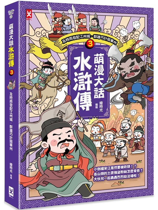 萌漫大話水滸傳(3)【及時雨發配江州城•群雄巧計鬧華州】 內容簡介 小倒楣宋江居然要被砍頭!? 各山頭的土匪強盜粉絲怎麼肯依? 大伙兒一起轟轟烈烈劫法場啦! ★人人都想搶我、殺我,可是聽到我「及時雨」宋江的大名後都會愛上我,所以說平常真的要多做好事啊! ★一日能行800里,就是我「神行太保」戴宗是也!要是生在現代,甚麼全馬超馬我通通都要拿冠軍! ★水滸傳裡唯一才貌雙全、智勇兼備的女將,就是我「一丈青」扈三娘!一出場就讓人見人愛的宋江連環吃鱉,除了我還有誰能做到! ★想殺我哥哥,先問我手中的板斧同不同意!有我「黑旋風」李逵在,不用甚麼梁山好漢,我自己就能救出宋江! 【讀萌漫水滸,學國學知識!】 ◎「歷史大揭密」:小說裡的歷史知識、小說與真實歷史的區別,全都跟你說分明! ◎「文化小百科」:古時候的老百姓是怎麼生活的,小百科讓你了解書中的背景時代北宋與成書的時代明朝! ◎「水滸人物檔案」:水滸傳裡的英雄好漢,完整大解析! 【閱讀關鍵與特色】 ✎適讀年齡:無注音(僅難字標示注音),適合9歲以上閱讀。 ✎學習領域:文學選讀、語文表達、專題閱讀與研究、國學常識 ✎核心素養:人際關係與團隊合作、系統思考與解決問題、身心素質與自我精進