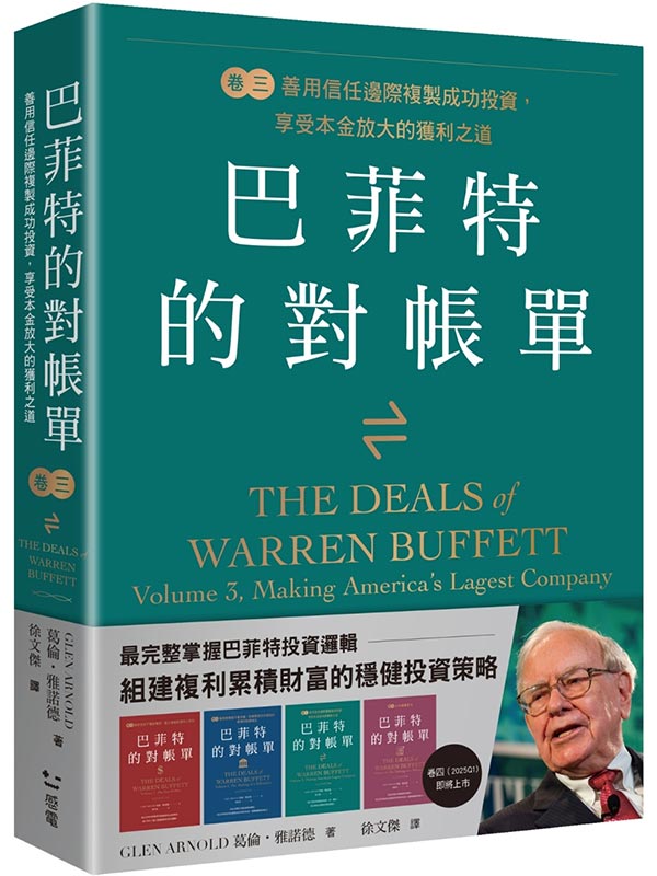 巴菲特的對帳單 卷三:善用信任邊際複製成功投資,享受本金放大的獲利之道 內容簡介 什麼樣的企業可以獲得巴菲特的「信任」? 什麼樣的企業內在價值被低估,其實是能創造複利的金雞母? 看巴菲特如何善用「信任邊際」,複製成功的投資案例 老是錯估標的的內在價值,更抓不準什麼時間該進場。以為可以長期持有利滾利,結果只是抱過一座山。 《金融時報》暢銷書作家、金融學教授葛倫.雅諾德,身為波克夏・海瑟威的股東之一,20年來追蹤波克夏的經營策略,見證波克夏從市場的新手玩家一路發展成全美淨資產最高的企業。在系列書《巴菲特的對帳單》中,雅諾德完整記錄巴菲特投資生涯中的重要交易與對帳單,讀者可以隨巴菲特的投資軌跡,看見他不斷修正自己的投資策略,洗鍊出價值投資的重要原則,也回頭重新檢視自己的投資歷程,組織個人的最強獲利邏輯。 呈現1989到2015年間,巴菲特已屆一般人退休的年紀,但他的事業卻全然不見放緩,反而更加精進,巴菲特絕大部分的資產都是在這個階段獲得;光是在1989到1998年間,波克夏的股價就上漲14倍,市值從50億衝上1000億美元,身為波克夏的主要持股人,這段期間等於是本金急據放大的時期。 巴菲特複製成功經驗,引領波克夏成為全美最大投資公司的十筆交易 善用信任邊際,估算內在價值,學習巴菲特讓本金無限放大的必備技能 巴菲特在1990年代前後,陸續投資了以下幾家公司——富國銀行(Wells Fargo)、全美航空(USAir)、美國運通(American Express)、鞋業集團(The Shoe Group)、哈斯柏格鑽石商店(Helzberg Diamond Shops)、威利家具(RC Willey)、飛航安全國際(FlightSafety International)、冰雪皇后(Dairy Queen)、利捷航空(NetJets)、通用再保險(General Re)。 這十筆重要的投資,讓波克夏成為市價超過一千億美元的世界巨頭。書中不僅分析巴菲特的成功,也檢討了巴菲特的失敗,以及巴菲特如何在失敗當中降低傷害。他能精心挑選能幫他賺錢的公司,並以合適價格購入,讓我們從中學習到寶貴的投資經驗,檢視這些投資,可以看出巴菲特的決策與分析邏輯,我們可以藉此預防自己看錯問題,或沒有提防到重要的細節。 推薦讀者 ●新手投資人:從巴菲特早期的投資經驗中學習穩健投資的原則,透過理解他的失敗和成功,建立投資信心和基礎知識。 ●資深投資人:從巴菲特的投資案例中得到靈感和策略上的指導, 尋求新的洞見和策略以持續優化自己的投資組合,以便面對市場的挑戰。 「一分的預防不只勝於十分的治療,還是價值一百分的治療。」──諺語,查理・蒙格最喜歡的一句話 從巴菲特的對帳單看股神如何創造並享受複利成果,建立領先大盤又穩健獲利的投資邏輯。 各界推薦 雷浩斯|價值投資者/財經作家 王怡人Jenny|JC財經觀點創辦人 財報狗(台灣最大的基本面資訊平台與社群) 大俠武林|財經作家 股海老牛|財經作家 陳彥行|臺灣大學財務金融系副教授 朱楚文|財經主播主持人
