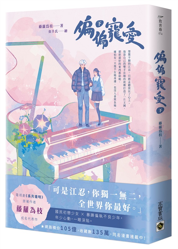 偏偏寵愛(下) 內容簡介 ★電視劇《長月燼明》原著作者 藤蘿為枝 成名代表作 ★國民初戀少女 × 暴躁偏執不良少年,年少心動,一眼深陷 ★網路積分105億,收藏數135萬,同名漫畫連載中! 江忍桀驁不馴、一身反骨,不愛這個世界,卻只將孟聽放在心上。 但他右腿的殘缺,使他自卑不堪,讓他選擇和她分手。 孟聽用盡了一切辦法,想要讓他知道她很在乎他, 「我並不覺得你有殘缺,你很完整。」你是我的英雄。 讓他那顆死寂的心再次瘋狂跳動。 江忍退了學,賣掉跑車和摩托車, 靠自己的雙手在H市建立了房地產王國,賺了一大筆錢, 只想要把全世界最好的東西都給孟聽, 她漂亮優秀、善良溫和,從不看輕他、嫌棄他。 是他混沌的人生裡唯一的光彩,是他的信仰和希望。 一場意外,命運兜兜轉轉還是給了孟聽一樣的死法, 她在昏迷前一刻看見了前世的江忍,背影寂寥, 她好怕他會孤單、會難過,於是努力地活過來, 她想要陪他過一輩子,教他去愛這個世界。