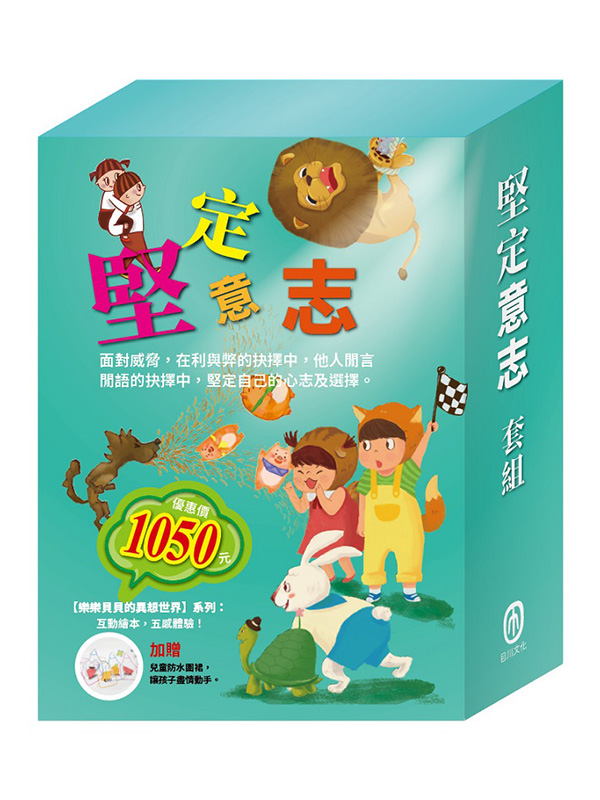 堅定意志 套組(樂樂貝貝的異想世界:三隻小豬+龜兔賽跑+獅子與老鼠+誰該騎驢子)贈 兒童防水圍裙乙個