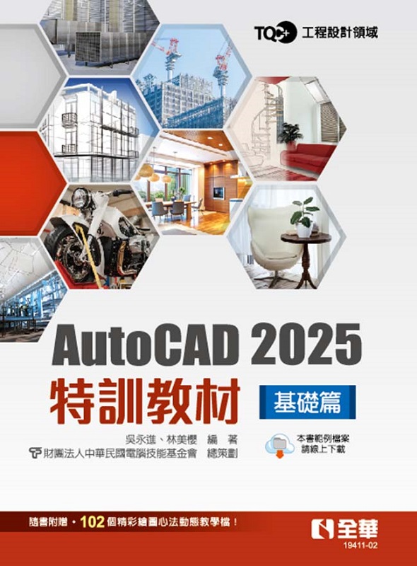 TQC+ AutoCAD 2025特訓教材-基礎篇 內容簡介 "電腦只是工具,人腦才是主導。資訊化社會必須全民使用電腦,各行各業電腦化不但需要優秀的專業人員開發一流電腦軟、硬體,更要熟悉電腦技能的人來操作。在工商業領域中,圖是一種世界性的語言,透過電腦輔助製圖(Computer Aided Design)的運用,更能有效率地處理並傳播各式各樣複雜圖面以滿足各個領域的需求。 身處產業競爭的時代,只有利用有效工具快速提高生產力的企業經營者,才能提升競爭力,開創新的經營局面。電腦技能基金會為因應此趨勢的來臨,辦理各項電腦技能測驗、競賽等相關活動,並藉著相關書籍的出版,提供有心想學好各項電腦技能的朋友,一個合適的管道。 AutoCAD自推出以來,廣受各界的好評,這次AutoCAD 2025的推出可說是Autodesk公司繼AutoCAD 2024之後,又一次劃時代之作,不只它的作業環境與操作界面更為友善與便捷,更包含了許多針對全球AutoCAD使用者的需求建議所加入的新指令及強化功能。 我們誠摯地感謝吳永進和林美櫻二位作者,以其多年的教學與實務經驗,並在電腦技能基金會的策劃下,為讀者編寫這本「TQC+ AutoCAD 2025特訓教材-基礎篇」,相信這本書可以成為CAD學習者的最佳選擇,誠如作者所說:「用心學習AutoCAD 2025期許新手快速成為CAD專業工程師,期許AutoCAD 2009~2023、2024老手如虎添翼,功力更上一層樓。」 若是讀者在經過一段時間的學習之後,想了解自己對本書之觀念及繪圖技巧的掌握以及個人電腦輔助製圖能力之提升狀況,可以繼續使用本會所出版之「TQC+ 電腦輔助平面製圖認證指南」,並歡迎參加本會所舉辦的「TQC+ 工程設計領域 電腦輔助平面製圖認證」,不但能肯定自己,使自己更有信心,亦能幫助自己在眾多的競爭者當中脫穎而出。 財團法人中華民國電腦技能基金會 董事長 杜全昌 " 本書特色 "1.讓初學者:紮紮實實的學好AutoCAD 2D基礎,靈活發揮於設計&繪圖上。 2.讓熟手們:迅速有效的熟悉AutoCAD 2D精華,大大的提昇效率與品質。 3.讓講師們:更加精確的掌握AutoCAD 2D技巧,讓教學上更有信心、更遊刃有餘。 4.所有讀者:循序漸進的累積AutoCAD 2D實力,順利通過AutoCAD技能檢定。 5.疑難雜症:歡迎到翔虹「AutoCAD線上教學課程論壇」來充電、練功與交流。 6.線上教學:歡迎加入最物超所值的AutoCAD線上教學 www.autocad.com.tw。 "