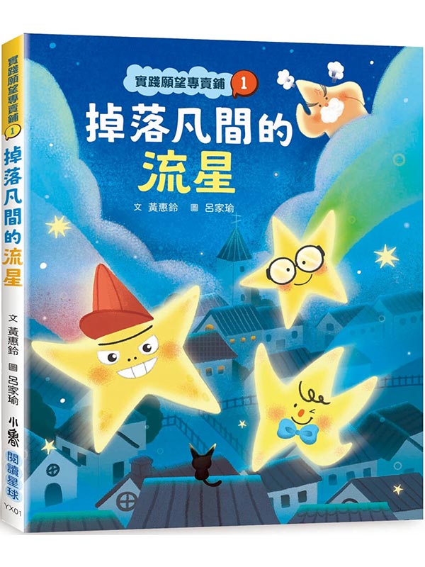 實踐願望專賣鋪1:掉落凡間的流星 內容簡介 啊!是流星! 冒險童話 X 親情友誼 X 同理心 ☆☆☆最閃亮的小學生閱讀橋梁書☆☆☆ 一閃一閃亮晶晶,滿天都是小星星。 三顆流星在執行任務時意外摔落凡間, 眼見能量即將耗盡,正擔心回不到天上時, 遇到了每天都在等待流星好許願的黑貓柔柔, 他們將展開一段什麼樣的奇異旅程呢…… 三顆陰錯陽差掉落到人間的流星,本來是身負著為他人完成願望的重責大任,卻因任務失敗而流落街頭。他們先是彼此打成一團,互相責怪,後來體會到若不能共患難,可能更難生存。於是他們打算靠著販賣願望,讓自己身體獲得能量,在凡間等候流星尋回機來接引。這時,黑貓柔柔出現了,是敵是友呢?出門在外,幸運的話能跟志氣相投的人結交成朋友,但是也有可能會遇到心懷不軌的人啊!他們成立的「實踐願望專賣鋪」,到底能不能成功呢? 夜晚來臨時,你抬頭仰望過天空嗎?你發現漆黑的夜空中,有什麼祕密嗎?阿明寇已經望著天唉聲嘆氣超過五小時了,他的脖子僵硬,但是他的哀號並不是因為筋骨痠痛。孔巴娃則是托著腮幫子悶不吭聲,眼角的那滴淚,都快變成化石了。阿拉縮猛抓頭,頭頂上根本沒有頭髮,只有因煩惱冒出了毛躁的電波,那些電波嘰嘰吱吱的,感覺快要打結炸開來似的…… 本書特色 1.銜接圖畫書與文字書的橋梁書 透過趣味的情節、活潑的插圖,運用淺顯易懂的文字,專為低、中年級孩子寫作、設計的橋梁書,引領孩子快樂、無負擔的閱讀,循序漸進的奠定獨立閱讀的基礎。 2.故事情節活潑有趣,富含人際關係的啟示 三顆掉落到凡間的流星,遇到了一隻神祕的黑貓,不但共同成立了一間「實踐願望專賣鋪」,而且在為他人實踐願望的過程中,更發展出一段段美妙的故事。這些故事同時展現了人際之間的矛盾與誤解、同理與互助,孩子可以從中得到啟發。 3.延伸學習單設計,孩子會讀寫和分享 本書特別設計有延伸學習單——「我會讀寫和分享」,讓小讀者在開放式問題的引導下,針對故事內容以及問題進行思考、撰寫個人想法或學習收穫等。 獲獎紀錄 榮獲國立編譯館優良漫畫(腳本)首獎、九歌現代少兒文學獎、「好書大家讀」年度好書、耕莘文學獎以及文化部優良讀物推介等獎項的黃惠鈴老師又一重磅之作! 真情推薦 小貝媽咪/親子共讀部落客、「小貝媽咪的育兒點滴」版主 王文瑞/澎湖縣馬公國小校長 吳惠花/新北市淡水國小校長、臺北教育大學助理教授 邢小萍/臺北市古亭國小校長 林志政/臺南市億載國小校長 林玫伶/清華大學客座助理教授、前台北市國語實小校長 林芷婕/桃園巿興國國小校長 林瑋/國語日報編輯部副總編輯 章美瑜/香港資深小學圖書館主任 陳盈達/臺中市大楊國小校長 謝鴻文/兒童文學作家暨研究者 (依姓氏筆畫) 小貝媽咪/親子共讀部落客、「小貝媽咪的育兒點滴」版主 你有什麼心願呢?是有形的還是無形的? 在「實現願望專賣鋪」裡,三顆意外掉入凡間的流星,經由了解他人的人生際遇,彼此同心協力完成不同許願者的心願。這些心願看似沒有關聯,但卻有個共同點——就是在找尋生命中的「愛」,這就是無形的願望,也是最觸動我的地方。但願每個孩子在追尋人生夢想時,能有愛、良善與美好相伴,當個充滿正能量的追夢者。 吳惠花/新北市淡水國小校長、臺北教育大學助理教授 在玩捉迷藏遊戲,最怕的就是被忘記了,那是一個人的孤單、無助。還好《掉落凡間的流星》是三顆流星摔落到凡間,三個夥伴可以互相支持,一起解決問題。流落凡間的三顆流星,加上黑貓柔柔在《比心願更重要的事》,竟開了間「實踐願望專賣鋪」,也體會到幫助別人完成願望,是一件有意義的事,尤其是完成任務後的幸福。第三集《看不見的願望》,最後以幫助五色鳥回到家園作結。我相信三顆流星也應該回到家了。 而橋梁書另一重要元素「圖」,更是發揮互動效果,別具一番感染力。真心推薦這三本書,值得大家收藏。 林玫伶/清華大學客座助理教授、前台北市國語實小校長、兒童文學作家 狼狽墜落凡間的三顆流星,在找到回家的路以前,必須靠著完成願望獲取能量,以免變成隕石,他們在貓朋友的幫助下開了一家「實踐願望專賣店」,以便維持能量、重回天上…… 故事充滿奇思異想,情節推展不落俗套,一個個許願的故事其實也是一齣齣人生劇場,有的溫馨感人,有的自私現實;有的渴望幸福的感覺,有的貪婪想要擁有一切,足以觸動小讀者的心靈。 作者惠鈴本來是位優秀的主編,閱書閱稿無數,現在轉換為作家,身手不凡,筆觸充滿對世界的關心,但下筆又很搞笑,真是服了她! 謝鴻文/兒童文學作家暨研究者 童話的浪漫美麗,往往是因為彌補了人世間的缺憾,抑或提供了所有生靈存在的安慰。因此若說這樣的童話是一種具有心靈療癒的解方,一點也不為過! 《實踐願望專賣鋪》這系列童話,便是符合前述那般浪漫美麗的作品。故事剛開始描述任務失敗掉落到人間的三顆流星倉皇失措的窘境,直到遇見想許願的黑貓柔柔,三顆流星開設「實踐願望專賣鋪」的綺麗夢想被實現,並順利為他人實現願望,得到滿足、光榮與驕傲,因此有了流落凡間似乎也不全然是災難的想法。換言之,三顆流星不僅是在幫助人或其他生物,同時也是在成就實現自己,找到自我存在的意義。 *有注音 *適讀年齡:7歲以上
