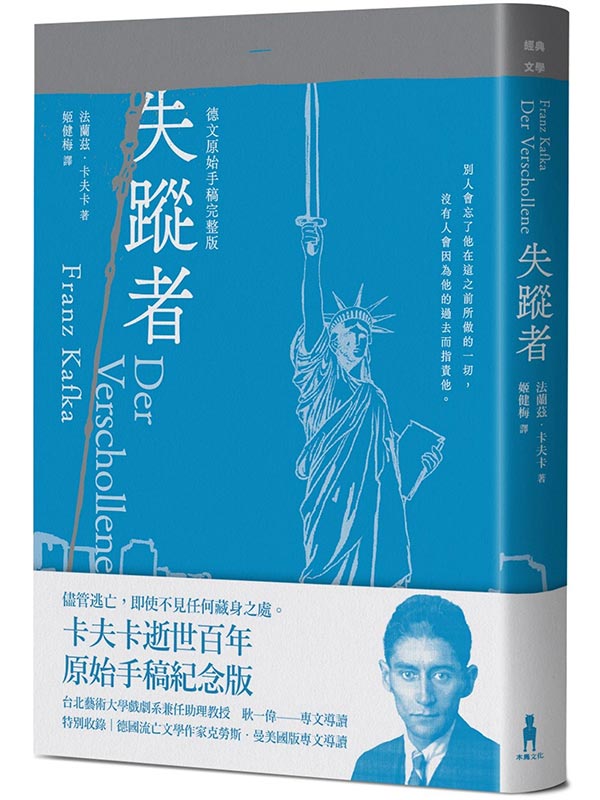 失蹤者(卡夫卡逝世百年紀念版) 內容簡介 「別人會忘了他在這之前所做的一切,沒有人會因為他的過去而指責他。」 ──法蘭茲.卡夫卡,《失蹤者》 儘管逃亡,即使不見任何藏身之處 卡夫卡逝世百年原始手稿紀念版 「當那艘已經放慢速度的船駛進紐約港,他像在一道忽然轉強的陽光中一眼看見他已觀察多時的自由女神像。她持劍的手臂跟先前一樣高高舉起,自由的微風在她身旁吹拂。」 十七歲的卡爾.羅斯曼由於一樁醜聞被父母送往美國,必須在陌異的國度自力更生。每回看似找到棲身之所,卻旋即遭到驅離,處境愈來愈苛刻,即使如此,卡爾仍無畏地朝荒野前進。直到一天,他看見上百位天使矗立於高聳的基座,以金碧輝煌的長喇叭吹奏著不和諧音…… 《失蹤者》為卡夫卡以想像中的新大陸為故事舞台的未竟之作,最初在一九二七年以《美國》為名問世。本書以重建原始手稿的校勘本為基礎,保留原稿拼字和標點,還原被卡夫卡摯友布羅德修改與刪除的部分,並收錄未完成的殘稿,期以忠實呈現的原稿文字,帶讀者一同領略卡夫卡筆下壯闊的美國風景。 ◆專文導讀——耿一偉 台北藝術大學戲劇系兼任助理教授 「卡夫卡難得寫了齣默片式的喜劇,這部小說歡迎每一個人,決定要加入《失蹤者》的人,我們在此向他道賀!」 ◆特別收錄——德國流亡文學作家克勞斯.曼美國版專文導讀 「他必須在美國生活,從而擁有特別的機會。他的創造者希望他能夠證明自己值得擁有這個機會,不希望他走向毀滅。因為詩人在他的一切榮光和悲慘之中深愛著他所創造出的這個純真人物,他最心愛的夢想,他的繼承人。」 專文導讀 耿一偉 台北藝術大學戲劇系兼任助理教授