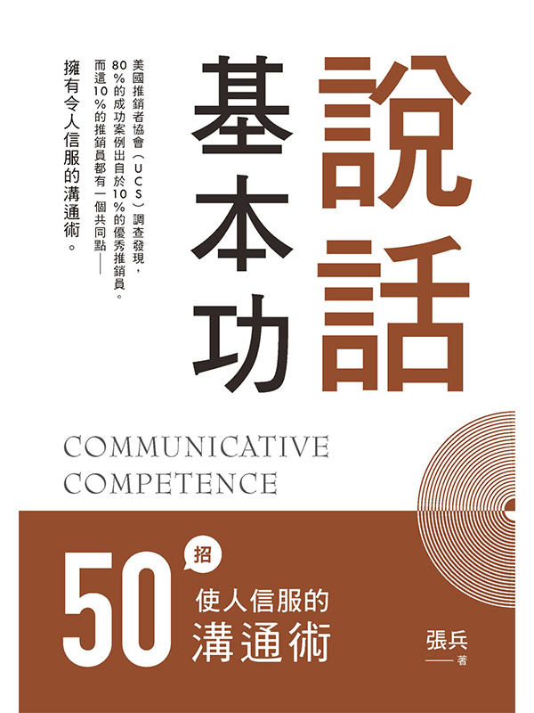 說話基本功 50招使人信服的溝通術 內容簡介 大多數成功的人都能言善道, 而不會說話的人大都不怎麼成功。 CNN王牌節目主持人――賴瑞•金(Larry King) 一句不合宜的玩笑可能會毀掉多年的友誼, 一段拙劣的談話也可能失去一位十拿九穩的客戶…… 有效的溝通是開啟成功之門的金鑰, 不僅可以展現在推銷產品上, 還能增強個人魅力,讓你擁有寬廣、穩固的人脈! 本書全方位解析如何有效說話的基本功, 讓你在紛繁複雜的生活和職場中遊刃有餘!