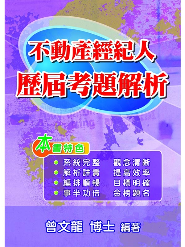 不動產經紀人歷屆考題解析 (第8版) 內容簡介 本書收錄106-113年的普考及特考的試題,包括土地法規與稅法、不動產估價概要、不動產經紀法規、民法概要及國文科目,解析詳實,提高效率,以便快速進入考試焦點,事半功倍,是準備不動產經紀人普考的最佳衝刺工具。 ●地政士/不動產經紀人國家考試用書 ●大專用書 ●公務員地政類考試用書
