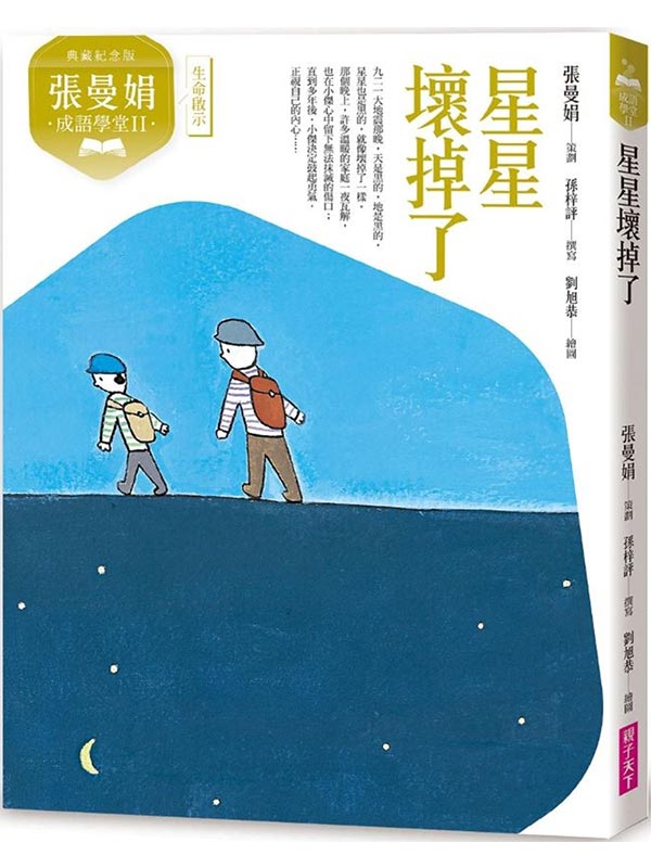 張曼娟成語學堂Ⅱ:星星壞掉了(典藏紀念版) 內容簡介 系列上市20週年,銷售40萬冊,典藏紀念版! 為經典刻劃新妝,從故事汲取智慧, 認識最精煉傳神的成語之美, 跟著曼娟老師提升中文力,讓年輕的心靈充滿善意。 我一直相信,如果孩子確實了解每個典故的由來, 甚至對於典故中的人物產生理解或同情或欽羨, 他們就不會錯用成語, 能更進一步體會這些四字成語,是多麼簡約又精緻。──張曼娟 一個告別與擁抱,受傷與復原的成長故事 那個晚上,九二一大地震帶走了小傑的爸爸。小傑記憶中的最後一眼,是爸爸不顧一切護著他的身影;家裡到處是散落的石塊,天是黑的,地是黑的,星星也是黑的,就像壞掉了一樣。 那場意外在小傑心中留下巨大的傷口,多年來,小傑的媽媽帶著他搬離了傷心地,一直不曾回到舊家,害怕面對那段過去。然而兩人看似平靜的生活,卻在一個不速之客闖入後發生了變化,也讓小傑決定正視自己的內心的傷口。家鄉如今變成了什麼模樣?而他是否可以放下悲傷,重新找回走向未來的勇氣? ◎本系列共4冊 1. 胖嘟嘟:中級班,寵物情感 2. 完美特務:晉級班,闖關冒險 3. 山米和浪花的夏天:高級班,親情友誼 4. 星星壞掉了:少年班,生命啟示 ◎本書關鍵字:成語、典故、作文、親情、單親、分離、悲傷、友誼、生命教育 ◎無注音,適合10~15歲以上閱讀 ◎十九項議題分類:環境、家庭教育、生命、防災、閱讀素養 ◎學習領域分類:語文、社會、綜合活動 本書特色 特色1 由知名暢銷作家張曼娟策劃,將成語融入新編故事中,帶領孩子享受閱讀、真正理解成語。 特色2 規劃孩子感興趣的主題,如:寵物情感、闖關冒險、親情友誼、生命啟示,讓人忍不住往下閱讀。 特色3 依照成語的難易度分成中級、晉級、高級、少年,循序漸進的學習更有自信與樂趣。 特色4 每則故事後皆附有成語出處、典故、解釋,並補充相似及相反的成語,讀完一本書約可學會150個以上的成語,具實用價值。 得獎記錄 ★文化部第32次中小學生優良課外讀物推介 ★2010年義大利波隆納童書展臺灣館優良圖書推薦 ★榮登誠品、博客來書店暢銷榜 系列好評 曼娟老師企劃,在故事中理解成語,原就是最完整、最有效率和樂趣的方法。神話、推理、同儕、親情,依照成語難度循序漸進,文字雅緻、故事動人,一舉數得,誠摯推薦!──資深國小教師 林怡辰 理解成語典故,同理故事人物,從故事中學成語,孩子就不會錯用成語,甚至可以活用成語,可說是用來全不費工夫的真功夫。──高雄市新上國小教師&作家 賴秋江