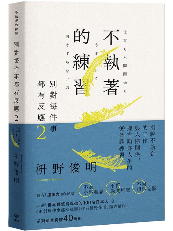 別對每件事都有反應2:不執著的練習 內容簡介 台灣「2023-2024年度十大暢銷書」—— 《別對每件事都有反應》系列突破40萬冊,超強續作! 「世界最值得尊敬的100名日本人」—— 枡野俊明,繼「該放下,就放下!」 這次將以禪學教會我們, 「學習不執著,過得更快活!」 擺脫不適合的工作與人際關係, 擁有順遂人生的99個禪練習! \《別對每件事都有反應》台灣銷售佳績/ ★誠品2023年度【中文暢銷書榜】TOP 3 ★誠品2023年度【人文社科】TOP 1 ★博客來2023年度百大【總榜】TOP 11 ★博客來2023年度百大【心理勵志】TOP 4 ★金石堂2023年度暢銷【總榜】TOP 17 ★誠品2024年度總銷量【人文社科】TOP 5 ★博客來2024年度百大【總榜】TOP 5 ★博客來2024年度百大【心理勵志】TOP 3 ★金石堂2024暢銷百大【總榜】TOP 7 ************************************************ ✓ 你是否常被情緒牽絆,過於焦慮? ✓ 你是否常因出口的話而感到後悔? ✓ 你是否經常杞人憂天,裹足不前? ✓ 你是否時常被工作或生活等事物追得喘不過氣? 人生,就是活在當下。 過去、現在、未來看似相連,實則各自獨立。 無論好壞,只要對事物執著,必然會產生牽絆。 感到不甘心,被各種欲望纏身,害怕失去等, 這些全是執著惹的禍,所以需要「前後際斷」。 別放不下過去,也不擔憂未來,專注凝視現在。 全力以赴做好此刻能做的事。 ************************************************ 希望讓生活及工作更順遂,「不被情緒牽絆的力量」是最強武器! 練習「不被情緒牽絆」,養成「對事物不過度執著」的心態, 其核心理念—— 不反應(鈍感力) 不在意(放下力) 不牽扯(擺脫力) 現代人普遍存在著一個現象,即「越自由越焦慮」。 除了有「選擇過多」的焦慮,網路世代還面臨「社交媒體」所帶來的壓力。 人們無法拿捏分寸,便開始讓負能量在心裡停留太久, 漸漸消耗了極積前進的力量。 ************************************************ 本書透過「簡化人際關係」、「轉念看待工作煩惱」、「身心重置法」, 學習擺脫心靈的負擔,進而獲得活在當下力量的99個準則。 今天起,專注於「想要開始」、「想要停止」的事, 如此,你便能從執著帶來的重重束縛中解脫── ☑ 不為瑣事受傷! ☑ 不因小事發怒! ☑ 不想多餘的事! ☑ 人生「更舒適」的祕訣!