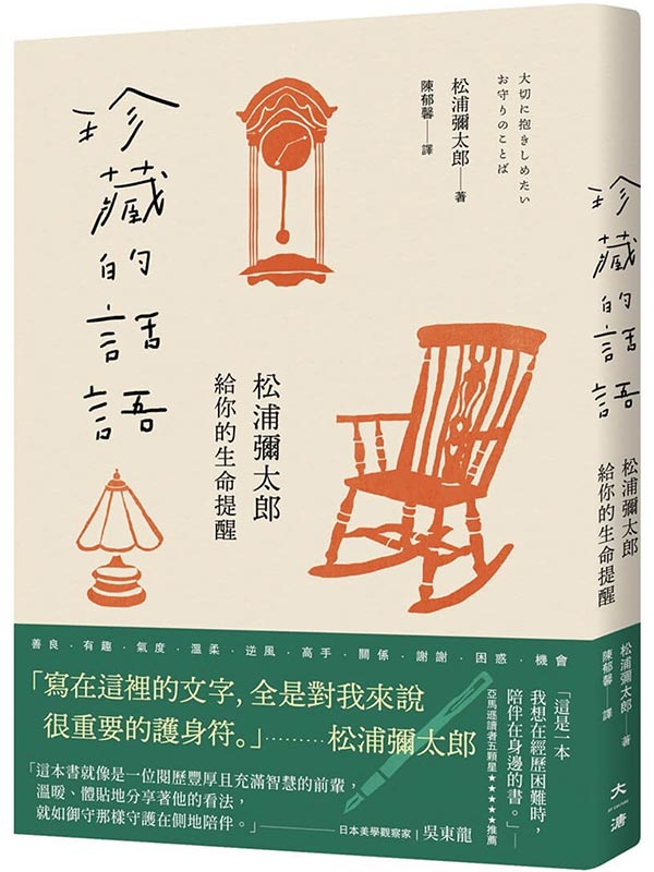 珍藏的話語:松浦彌太郎給你的生命提醒 內容簡介 該書出版一個月內重印兩次,銷售量達1.6萬冊,成為書店和社群媒體的熱門話題。 *這是一本每次讀到都觸動我心的書。 *155篇文字,每篇都是一則重要的提醒,書中收錄著作者的旅行照片, *像是一個文字藥箱,總是能為每個人找到合適的解方。 「這是一本我想一直再讀的書。」亞馬遜讀者5顆星推薦 話語是什麼呢? 若有人這樣問起,我會回答:話語是御守。 「寫在這裡的文字,全是對我來說很重要的護身符。 它們在我痛苦時,困惑時,迷惘時,以為自己快要垮掉時,向我靠近, 要我背負起來,聽取其中的訓斥或鼓勵。」 ----松浦彌太郎 話語是護身符一般的東西。進一步說,話語是魔法,可以使好事成真,也可以造成不那麼好的事發生。如果話語是這樣的魔法,那麼該如何使用它呢?作者經常思考這問題。 使用語言文字的方式,就是你活著的方式。 話語可以使人歡喜,要用來為別人帶來笑容。話語也會使人憤怒、悲傷或低落,無論是收自他人或是無意中看見,帶著這番對話語的認識,我們逐漸成長。 沒錯,話語的前面總是有人, 作者體認到話語的重要性,他寫下這些影響生命的文字,希望能用話語為人帶來幸福、鼓勵;或是一個警示,給你提醒、讓你反省。話語就是有這樣的力量,也許不那麼好,也沒關係。因為生活總是有好的壞的。 書中說著: *以「節制」之心與人交往,這樣做是為了可以一直喜歡那些人那些事物。 *心中若能有這麼一張大桌子,不管誰來大概都可以溫柔對待吧。 *萬物萬事都有其時間,就全心等候吧。一心等候。安靜等候。等候是愛的一種表現。 *原本怎麼樣都突破不了的關卡,咻咻咻地就這樣跨過去了。 *試著以肉身與對方衝撞一次。也許會下雨,也許會颳風。然而,風雨將為大地帶來滋潤,然後,在什麼地方就冒出了新芽不是嗎。 *得到對方的感謝,想討人歡心,這類心情是麻煩的東西,源自於內心裡想要支配對方的意念。絲毫不要有「我這樣做都是為了你」的心意,要出於自己想做才去做。 *掉到谷底的時候,要對自己伸出手。帶著這一份領悟在心上,就是以成熟大人的態度活下去。 松浦彌太郎送給你,他最想珍藏的話語¬¬¬¬--不可以忘掉這種說出「事情不是這樣」的勇氣。 把它們放在手邊,一段話,就能給予勇敢的力量。不安時,就勇敢跨出去吧。 雖然做的是小事,一心一意做它。不帶特別的意念或感受,只是專心做拿手的事。做著做著,心也被整理一遍,變得乾淨了。 這是話語的魔法,要小心收著。 重要的單詞 ● 無論你做什麼,總是要考慮那些「超越」他們的人。 ● 詞與詞之間的距離會根據你對對方的責任程度而改變。 ● 不要被善良所迷惑。 ● 否定不正確的事是不對的。 ● 讓我們做自己。 ● 不說話的東西更要重視。 ● 愈是不懂的時刻,更要自己去想。 名人推薦 「人生總是充滿未知,即便再怎麼成熟了,免不了遇到問題突如其來的時候,也常讓人感到不知如何面對,或者該擁有如何的心態從容以對。 這本書就像是一位閱歷豐厚且充滿智慧的前輩,或許不見得會直接提供答案或指導,但卻會溫暖、體貼地分享著他的看法,就如御守那樣守護在側地陪伴;期待自己對未來也能更加安心與篤定。」吳東龍(日本美學觀察家) 「我從這本書裡得到比鼓勵或建議更多的東西,因為那時我還不知道,後來這份書稿將會成為我在旅途上的隨身讀物和等待時的心靈活動。」陳郁馨(本書譯者) 亞馬遜讀者5星推薦 「這是一本我想一直一直再讀的書。」 「松浦彌太郎的話語很溫柔,悄悄地觸動我的心。這是一本我想在經歷困難時陪伴在身邊的書,」 「我最喜歡的松浦彌太郎的書!。它很舒服、友善、平靜,但它讓你意識到什麼是重要的!」 「這是一本我想在經歷困難時陪伴在身邊的書,我想成為一個有心理空間從多個角度積極看待事物的成年人。」 「打開它,上面會有一些好話,它會提醒你忘記的事情,給你生活的提示,無論你有沒有煩惱,這些話都會保護你。」 「我在不同的地點、不同的時間、不同的心情下翻開了這本書,引起我共鳴的文字也因時間而異。有很多話,不只在你憂心忡忡的時候,而且在你瞬間打開的時候,都會讓你恍然大悟…」