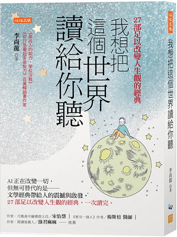 我想把這個世界讀給你聽:AI正在改變一切,但無可替代的是──文學經典帶給人的震撼與啟發。27部足以改變人生觀的經典,一次讀完。 內容簡介 「這27本名著,都是我所讀過、為我帶來許多啟發的好書, 我怕時光太快,你讀不完或者錯過了它,所以我讀給你聽。」 ◎當下微不足道的決定,時間一久才發現它改變了人生──《生命中不可承受之輕》 ◎權力的魅力,是它所帶來的施虐感:讓他人受折磨,證明自己有力量──《1984》 ◎夢想跟金錢,只能擇一追求?你可以都要,只是有順序──《月亮與六便士》 ◎寫作跟跑步很像,你得堅持,且別無捷徑──《關於跑步,我說的其實是……》 作者李尚龍為百萬暢銷書作家, 曾獲選年度影響力作家、亞洲好書榜「年度勵志作家」, 2024年在矽谷創業,受邀在哈佛演講《人工智慧時代下的內容創作》。 AI正在改變一切,包括我們的學習、生活,甚至人際交往模式。 但有一樣東西無法被替代――文學經典作品帶給人的心靈震撼。 我能做我喜歡的事,同時又有錢嗎?窮小子能翻轉階級嗎? 人性究竟是善是惡?有真正的善良嗎?幸福究竟是什麼? 答案就在經典中。 ◎是什麼滋生人性的惡?──《蒼蠅王》 一群兒童受困荒島,從初始開心的分工,演變成暴力殺死同伴! 原來,有分工就有權力,有權力就會讓人動念:為什麼那個掌權的人不是我? ◎夢想與金錢,你可以兩者都要──《月亮與六便士》 查爾斯有份穩定的工作、美滿的家庭,有天卻突然拋棄一切,只為了畫畫。 滿地都是六便士,他卻抬頭看著月亮。 夢想跟金錢,一定只能追求一個嗎?你可以都要,但得有順序。 ◎人可以被毀滅,但不能被打敗──《老人與海》 老人耗盡力氣終於打敗大魚,血腥味卻引來鯊魚, 他先用刀對抗,刀斷了用短棍,短棍斷了用船槳……最後,大魚只剩骨頭。 努力到頭來可能是一場空,就算沒人看見你與鯊魚搏鬥,但你至少對得起自己。 ◎別人都有我也要,導致毫無必要的貧窮──《湖濱散記》 梭羅在瓦爾登湖邊蓋房子自住,務農、打零工賺取基本收入, 讀《湖濱散記》,讓你思考生活的另一種可能性: 快節奏、快時尚、消費主義的生活,真的是你想要的嗎? ◎當機器人擁有人心,人類卻成了機器──《克拉拉與太陽》 機器人克拉拉希望成為真正的人類,與此同時,人類卻追求著機器化。 在AI越來越進步的時代,人類真正無可取代、獨一無二的東西是什麼? ◎追求幸福當道的今日,這麼多人迷戀太宰治?──《人間失格》 「生而為人,我很抱歉。」太宰治否定一切,包括自己。 當你覺得生命毫無意義,有他「墊底」,或許能讓你重拾希望。 關於孤獨、人心、愛情、階層、人生選擇、財富……, AI正在改變一切。但有樣東西無法替代――經典帶給人的心靈震撼。 27部足以改變人生觀的經典,一次讀完。 名人推薦 作家、丹鳳高中圖書館主任/宋怡慧 《要有一個人》作者/楊斯棓 醫師 作家、閱讀推廣人/綠君麻麻