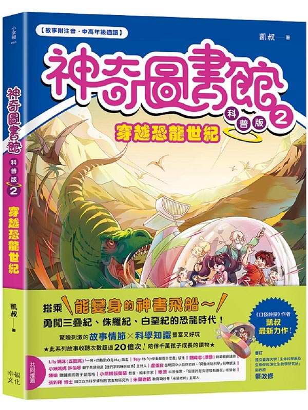 【神奇圖書館】科普版(2):穿越恐龍世紀(中高年級適讀) 內容簡介 《口袋神探》作者──「故事大王」凱叔 超人氣兒童冒險故事系列 最新力作《神奇圖書館》科普版,結合大冒險旅程+有意思的科學知識 ★∼此系列故事收聽次數超過20億次!!陪伴千萬孩子成長的讀物∼★ 翻開書,搭上能變身的「神書飛船」,穿越時空前往恐龍世紀啦 收錄「我的科學筆記」,讓孩子進一步了解有趣又有料的小知識 包含恐龍家族及演進史、科普Q&A、科學家小故事 【故事附注音、科學筆記附詳細圖解,中高年級適讀】 ◎『穿越恐龍世紀』故事起源: 有著長長白鬍子的凱糊塗老師上知天文、下知地理,孩子們最愛問他「為什麼?」,他班上的學生──吳天天、董曉雨、張小胖、鄭大海還有一隻名叫「括括」的貓咪,常搭乘老師的「神書飛船」到處探險。某個午後,天天和張小胖放學後溜進圖書館看恐龍化石,小胖看到書架上有凱糊塗老師的神筆,好奇地拿來玩,沒想到神筆發出金光,兩人瞬間被捲進遠古的恐龍時代,並且把恐龍蛋帶回現代了!為了把恐龍蛋送回去,凱糊塗老師神筆一揮,呼喚神書飛船,科學小組全員一起回到三疊紀,展開找尋這顆恐龍蛋原生地的旅程……生動的故事情節驚險刺激! ◆三疊紀的氣候環境是什麼樣的?代表恐龍是哪些? ◆地球上出現了什麼樣的重大事件,讓恐龍正式進入侏羅紀? ◆從已出土的恐龍化石裡,我們可以得知恐龍時代的哪些祕密? ◆科學小組進到恐龍最繁盛的白堊紀,遇到火山爆發和精采的恐龍對戰! ◆恐龍會撫育牠們的寶寶嗎?恐龍那麼大,也可以孵蛋嗎? ◆有些恐龍會築巢,為什麼?牠們是怎麼做自己的巢穴呢? 《神奇圖書館-科普版》是集結冒險故事和科學知識的系列,專門為小學生量身打造生動又有趣的情節,加上圖文並茂的小知識單元,能激發孩子們對於科普的探索欲及好奇心,第二冊帶大家了解恐龍世紀。 【我的科學筆記──認識恐龍、Q&A、科學家小故事】 恐龍曾是陸地上有名的霸主,牠們的外型、習性都不一樣,書中以插畫加文字說明恐龍的誕生、演進史,透過名錄認識不同恐龍的資料和習性。還要經歷三疊紀、侏羅紀、白堊紀,看看各時期代表的恐龍有哪些、恐龍寶寶怎麼出生的、世界上有哪些知名博物館可以看到恐龍化石,以及專門研究恐龍的科學家小故事。 ▌神奇圖書館(科普版)系列,共四冊 ▌ 【神奇圖書館】科普版(1):人體冒險隊 【神奇圖書館】科普版(2):穿越恐龍世紀 【神奇圖書館】科普版(3):宇宙追擊戰 【神奇圖書館】科普版(4):變異植物危機 本書特色 .畫風及場景生動,翻開書,隨時來場紙上大冒險! .故事附注音,孩子自己讀很容易,家長陪讀更好玩。 .流暢又驚險的故事情節,讓小朋友很快就能記住科學知識。 .收錄恐龍圖文插畫及Q&A,滿足不同年齡層想問為什麼的好奇心。 .從故事學生活教育!讓孩子敬畏生命,熱愛萬物、保護大自然。 共同推薦 Lily媽咪(五寶媽)/「一男+四胞胎 O.Q.Ma」版主 Tey/FB「小學生都看什麼書」版主 小妹媽媽 許伯琴/親子共讀頻道【我們家的睡前故事】主持人 小熊媽張美蘭/教養、繪本作家 米蘭老師/教育類粉專「米蘭老師」主理人 張鈞翔 博士/國立自然科學博物館 古生物研究員 陳瑜/鏞鏞甫甫親子部落格 寒波/科普作家、「盲眼的尼安德塔石器匠」經營者 盧俊良/岳明國中小自然老師、「阿魯米玩科學」粉專版主 魏瑋志(澤爸)/親職教育講師 (依筆畫排序)