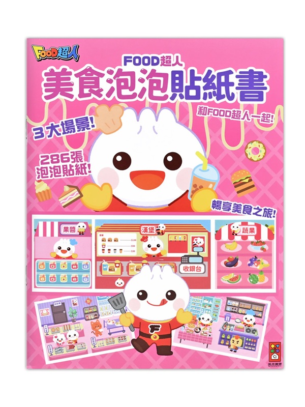 美食泡泡貼紙書-FOOD超人 內容簡介 " 在優閒的一天,跟著FOOD超人一起去逛好玩的美食之旅,不同 的美食滿足孩子對美食的想像,透過正確的分類來認識不同的物品 是在什麼分類。3大生動故事場景,共286張貼紙的豐富內容,讓孩 子邊探索邊玩樂,遊玩美食之旅! 《FOOD超人美食泡泡貼紙書》運用貼紙結合情境認知,重覆黏 貼的泡泡貼,引導孩子觀察並理解畫面中的細節。讓孩子在玩貼紙 的過程中動手又動腦,訓練想像力、觀察力,將情境貼紙撕下、貼 上的過程中,亦有助於小手肌肉發展,促進手眼協調。 這是一款適合親子共讀的遊戲貼紙書,家長可在旁教導孩子如何 貼貼紙,也可以讓孩子動動小手發揮創意,貼出學習的樂趣! " 本書特色 "1.貼紙重複黏貼 內含286張情境貼紙滿足孩子愛玩貼紙的天性,即使不小心貼錯, 亦能隨意撕下重貼,不留殘膠放心玩。 2.生動精美插圖 鮮豔亮麗的可愛插圖吸引孩子注意力,激發孩子好奇心,輕鬆培養 情境認知! 3. 情境遊戲: 根據不同的情境背景,透過重覆黏貼的貼紙設計,讓孩子激發想像 力,讓每一次遊玩都跟第一次玩一樣。 " 商品功能 "• 刺激創意表達 自由貼紙組合與角色擺放,鼓勵孩子發揮想像力,創造專屬FOOD 超人小劇場。 • 訓練手眼協調 撕貼動作讓孩子在遊戲中鍛鍊小肌肉與動作控制,提升精細動作能 力。 • 建立空間與邏輯概念 透過角色貼紙與場景搭配,引導孩子思考位置、順序與情節邏輯。 • 提升語言與敘事能力 孩子在貼圖同時說出故事或角色對話,無形中訓練表達與語彙能 力。 • 專注力練習 在貼貼過程中需要觀察、選擇與操作,有助於延長孩子的專注時 間。 "