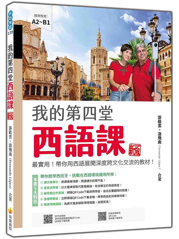 作者簡介 游皓雲 25年前因為想看懂中南美洲的棒球,便熱血地學起西班牙語,越學越覺得自己上輩子應該就是講西班牙語的人。曾到西班牙求學一年、多明尼加教書兩年,認識瓜地馬拉籍的另一半後,西班牙語果然成了要講一輩子的語言。 師大華語教學研究所碩士,語言教學經歷累積19年,專職教臺灣人西班牙語,也教世界各國的外國人士華語,學生國籍超過74個國家。是多國語言愛好者,在新竹與先生洛飛南共同創辦「雲飛語言文化中心」。著有《我的第一堂西語課》、《我的第二堂西語課》、《我的第三堂西語課》、《我的第四堂西語課》、《每天10分鐘,聽聽西語人怎麼說》、《我的第一堂華語課》(以上均由瑞蘭國際出版)、《懂語感,無痛學好任一種外語》(時報出版)。 個人部落格:www.yuhaoyun.world 洛飛南 Fernando López 瓜地馬拉籍,在臺灣專職教西班牙語。2013年與太太在新竹創辦雲飛語言文化中心,教學時數累積10,000小時。 在瓜地馬拉主修工業工程,曾任瓜地馬拉高中教師,來臺後獲取交通大學GMBA碩士。碩士畢業後發現自己最大的熱情還是教學,除了基礎西語之外,也融合工程、商業背景,為學生客製化商務西語課程。 著有《我的第一堂西語課》、《我的第二堂西語課》、《我的第三堂西語課》、《我的第四堂西語課》和《每天10分鐘,聽聽西語人怎麼說》,並為「Esta pareja 台瓜夫妻」及「Chino para negocios 商業中文」兩個podcast的主持人之一,希望這本書能夠幫助更多臺灣學習者學好自己的母語。 個人部落格:www.fernandolopez.world